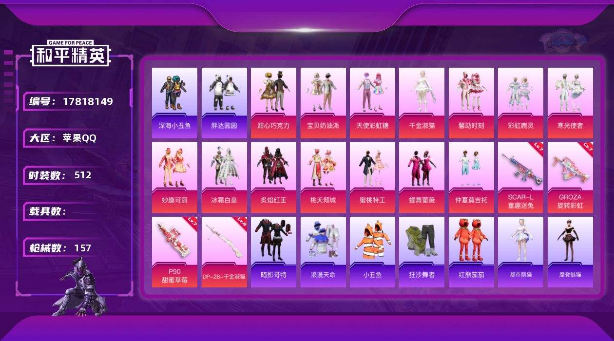 【580009】【不可二次】【苹果QQ】大橘为重 漫步者 炙焰红王 汤姆逊-林间仙鹿 蝶舞蔷薇 深海小丑鱼 馨动时刻 SCAR-童趣迷兔 瑞龙福将 童趣迷兔飞行器 GROZA-旋转彩虹 P90-甜蜜草莓 浪漫天命 激萌罗小黑 胖达圆圆 团圆交子 红熊茄茄 迅捷狂鲨 M762-瑞龙福将 甜心巧克力 狂沙舞者 彩虹鹿灵 蜜桃特工 AKM-缤纷海域 天使彩虹糖 粉红小猪 宝贝奶油派 风华少年志 暗影哥