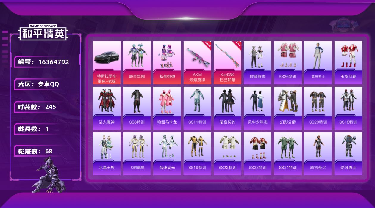 【581307】【可二次】【安卓QQ】蓝莓炮弹 软萌银虎 AKM-炫紫旋律 静灵氛围 粉甜马卡龙 暗夜契约 幻影公爵 精灵迷巫降落伞
