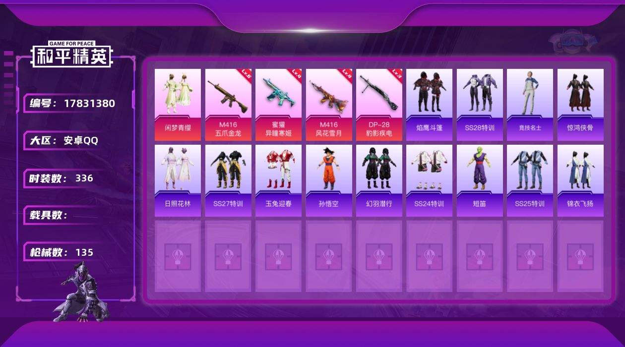 游戏区服:和平精英 / 安卓系统 / QQ账号