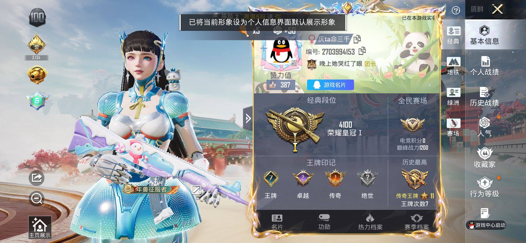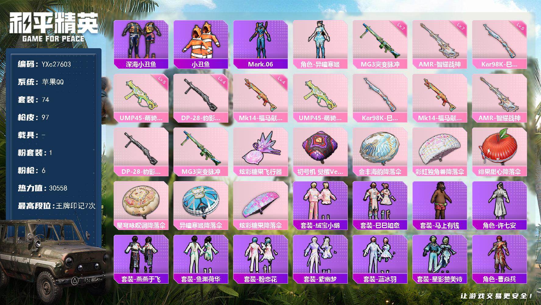 游戏区服:和平精英 / 苹果系统 / QQ帐号