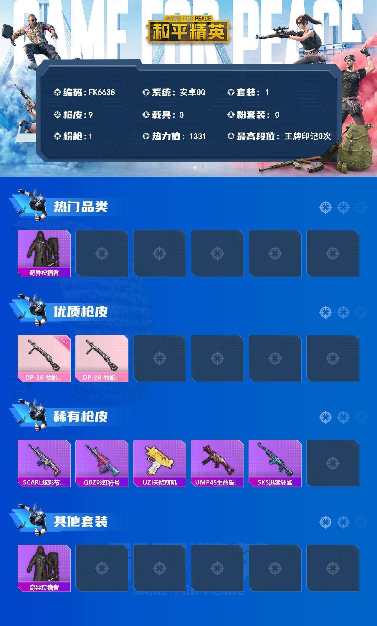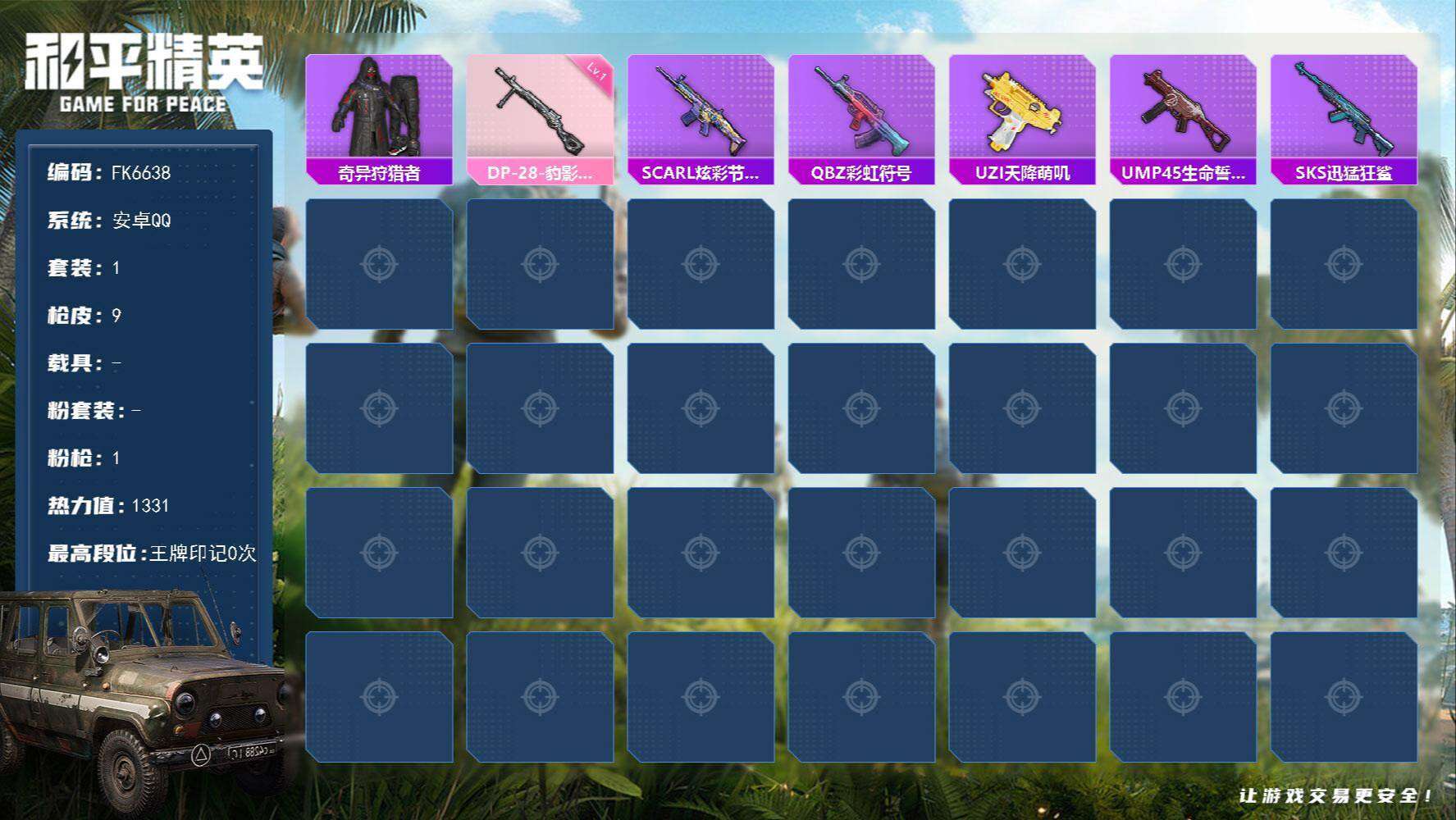 游戏区服:和平精英 / 安卓系统 / QQ账号
