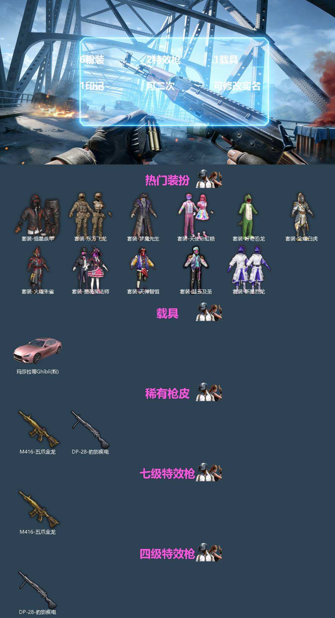 【587065】【可二次】【安卓QQ】火耀朱雀 M416-五爪金龙 新星烈龙 天禅智恒 火曜朱雀 黑色刀锋 东方飞龙 幻影战神降落伞 忍者信条 至尊龙雀降落伞 恶魔人蛛 天使彩虹糖 甜心宝贝降落伞 金耀白虎 玛莎拉蒂粉色 慧云及圣 彗云及圣 幻影公爵 雪山精英 裁决冥王 未来战士降落伞