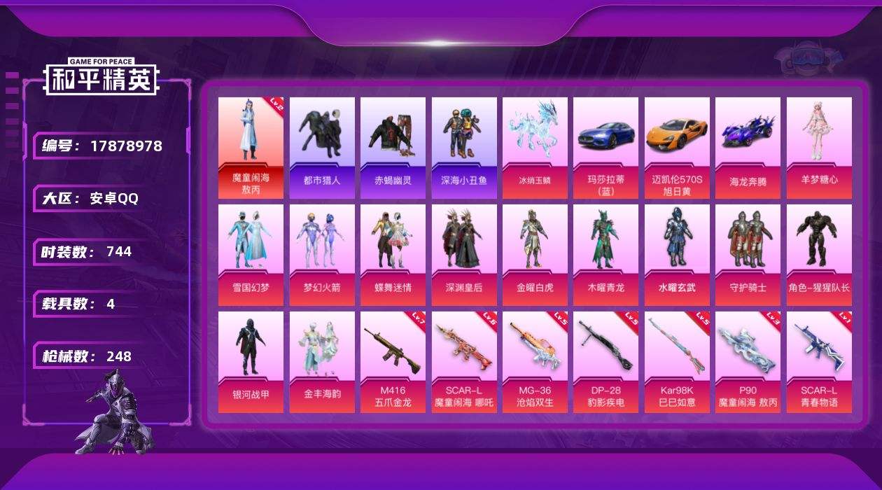 【588816】【不可二次】【安卓QQ】龟仙人 魔童闹海-敖丙 木曜青龙 迈凯伦570S 旭日黄 雪国梦幻 深渊皇后 M416-五爪金龙 金曜白虎 漫步者 都市猎人 M24-奇异狩猎者 木耀青龙 海龙奔腾 水曜玄武 至尊龙雀飞行服 银河战甲 赤蝎幽灵 恶魔人蛛 仓鼠灰灰 M416-仓鼠灰灰 深海小丑鱼 浪漫波比 蝶舞迷情 浪漫天命 迅捷狂鲨 春暖花开飞行器 水耀玄武 玛莎拉蒂蓝色 雪国幻梦 梦幻