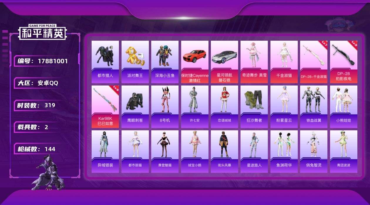 【589067】【不可二次】【安卓QQ】星河领航(磐石银) 漫步者 都市猎人 深海小丑鱼 派对舞王 狂沙舞者 AWM-黄金龙骨