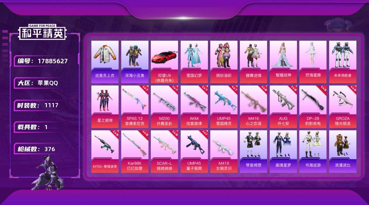 【589613】【可二次】【苹果QQ】龟仙人 大橘为重 M762-青锋波束 雪国梦幻 SPAS-12-音爆索尼克 星之彼岸飞行器 极速红龙 仰望U9(赤霞丹朱) M762-奇异狩猎者 UMP4雪国精灵 巡查衣 UMP45-量子极限 星之彼岸 M416-仓鼠灰灰 M416-心之恋语 缤纷油彩 深海小丑鱼 浪漫波比 瑞龙福将 蝶舞迷情 浪漫天命 团圆交子 软萌银虎 SS1特训 迅捷狂鲨 萌神柯基 M
