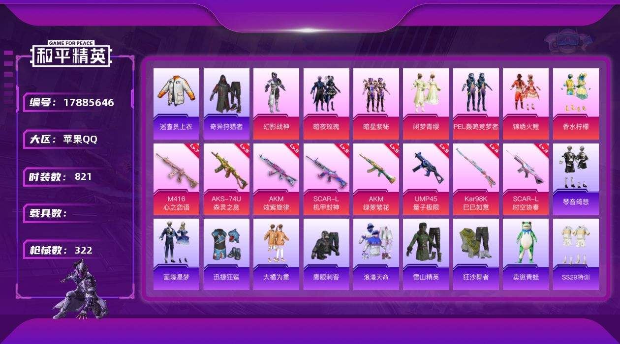 【589620】【不可二次】【苹果QQ】龟仙人 AKM-绿萝繁花 暗星紫秘 大橘为重 漫步者 M416-星际漫游 M24-奇异狩猎者 机械英豪 M762-奇异狩猎者 SCAR-L-机甲封神 巡查衣 UMP45-量子极限 M416-心之恋语 M416-快乐主宰 瑞龙福将 浪漫天命 梦之呓语 纯白誓言 团圆交子 AKM-奇异狩猎者 SCAR-L-时空协奏 锦绣火鲤 迅捷狂鲨 奇异狩猎者 M762-瑞