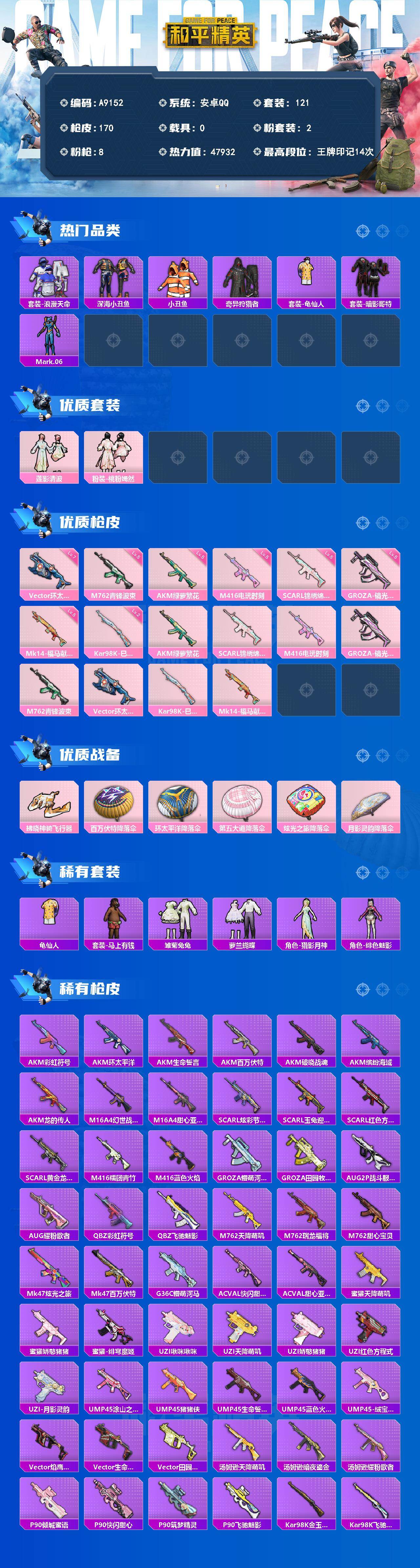 游戏区服:和平精英 / 安卓系统 / QQ账号