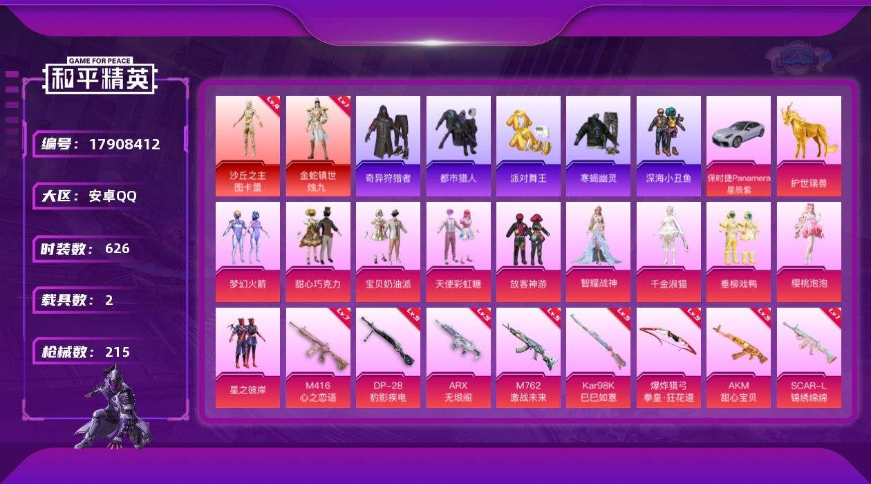 【592719】【不可二次】【安卓QQ】龟仙人 漫步者 都市猎人 M24-奇异狩猎者 金蛇镇世-烛九 豚鼠丹丹 忍者信条 M762-奇异狩猎者 寒蝎幽灵 沙丘之主-图卡盟 放客神游 星之彼岸 M416-心之恋语 深海小丑鱼 浪漫天命 AKM-甜心宝贝 M762-激战未来 迅捷狂鲨 奇异狩猎者 甜心巧克力 狂沙舞者 SCAR-L-锦绣绵绵 梦幻火箭 AKM-缤纷海域 天使彩虹糖 宝贝奶油派 派对舞