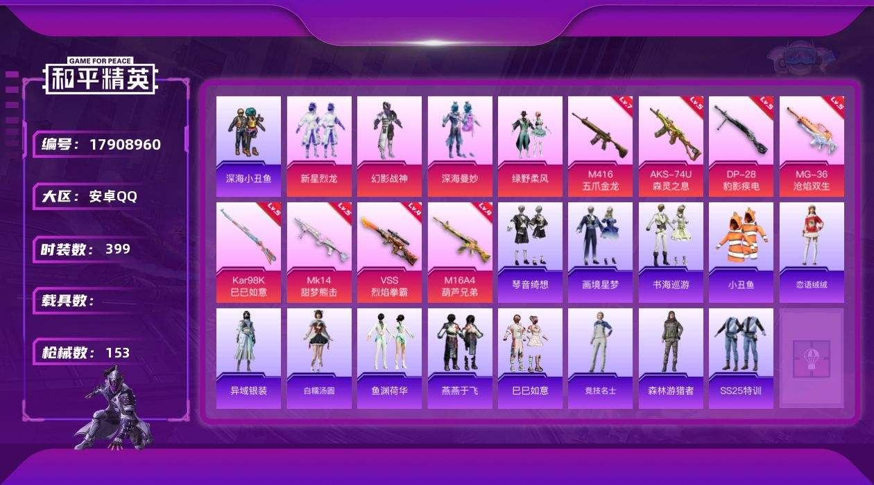 【592938】【可二次】【安卓QQ】深海曼妙 绿野柔风 VSS-烈焰拳霸 M416-五爪金龙 AKM-缤纷海域 新星烈龙 深海小丑鱼 幻影战神 M16A4-葫芦兄弟