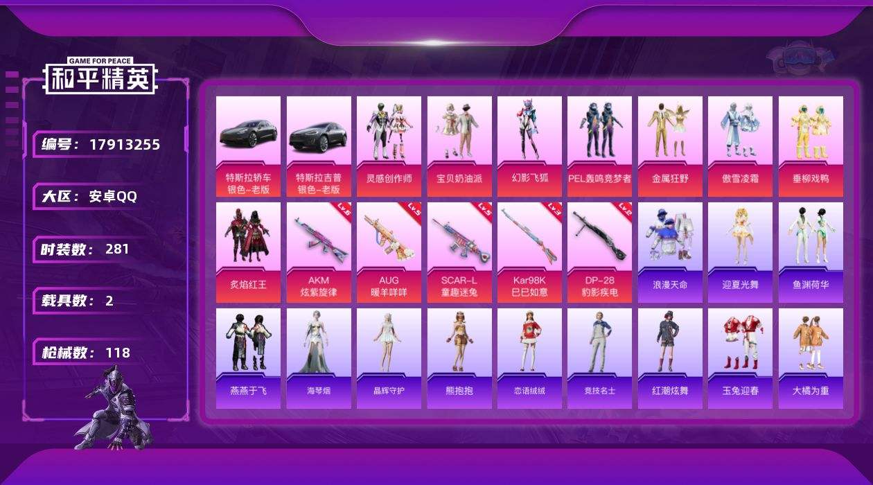 【593829】【可二次】【安卓QQ】爱神 大橘为重 炙焰红王 特斯拉3银色 金属狂野 AKM-炫紫旋律 PEL轰鸣竞梦者飞行器 太空嘟嘟飞行器 特斯拉X银色 PEL轰鸣竞梦者 宝贝奶油派 SCAR-童趣迷兔 神秘黑猫 浪漫天命 梦幻火箭飞行器