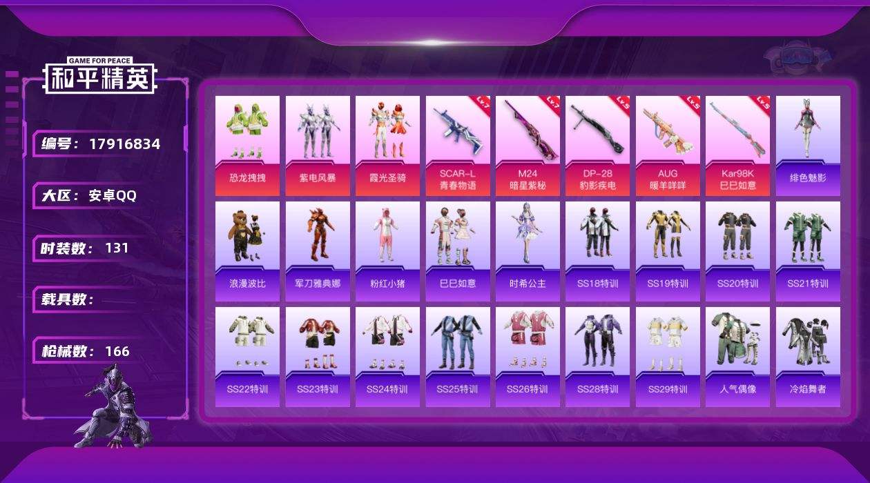 【594207】【可二次】【安卓QQ】紫电风暴 恐龙拽拽 浪漫波比 M24-暗星紫秘 SCAR-L-青春物语