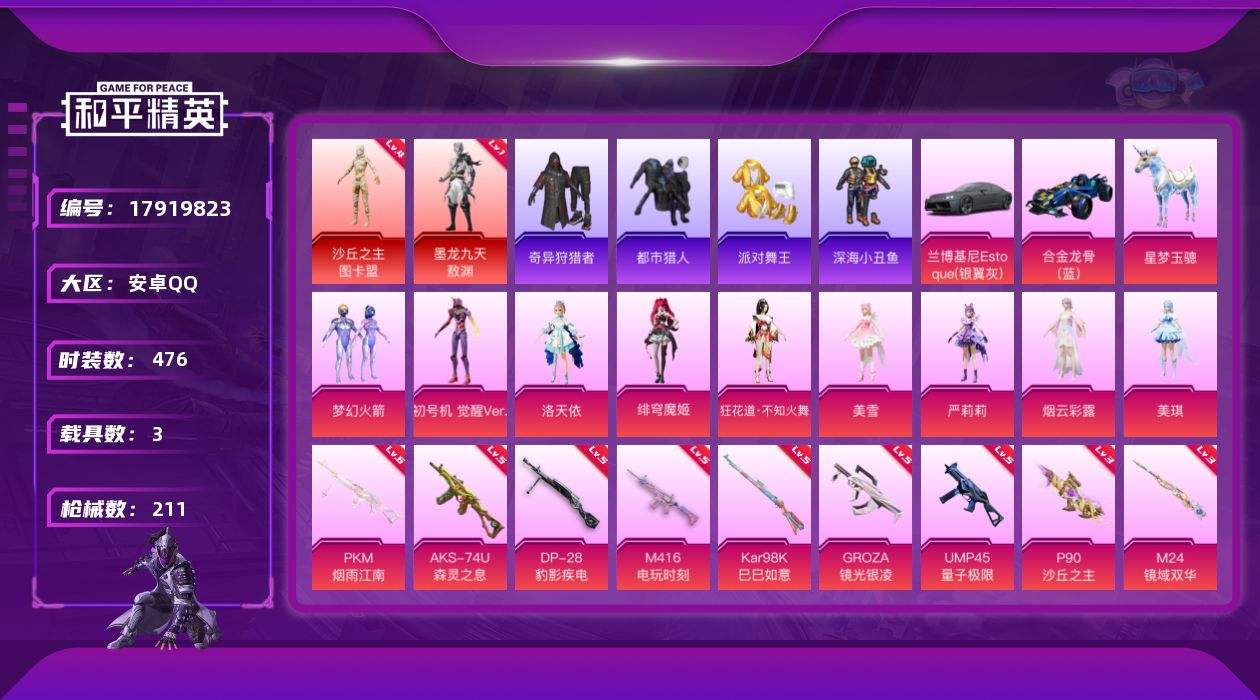 【594721】【可二次】【安卓QQ】合金龙骨蓝色 漫步者 P90-沙丘之主 都市猎人 PKM-江南烟雨 洛天依 忍者信条 M416-电玩时刻 沙丘之主-图卡盟 UMP45-量子极限 墨龙九天-敖渊 深海小丑鱼 浪漫天命 梦幻火箭飞行器 M24-镜域双华 星梦玉骢 迅捷狂鲨 奇异狩猎者 MG3-洛神天依 兰博轿车灰色 狂沙舞者 龙翔九天飞行器 M416-墨龙九天 梦幻火箭 AKM-缤纷海域 粉红