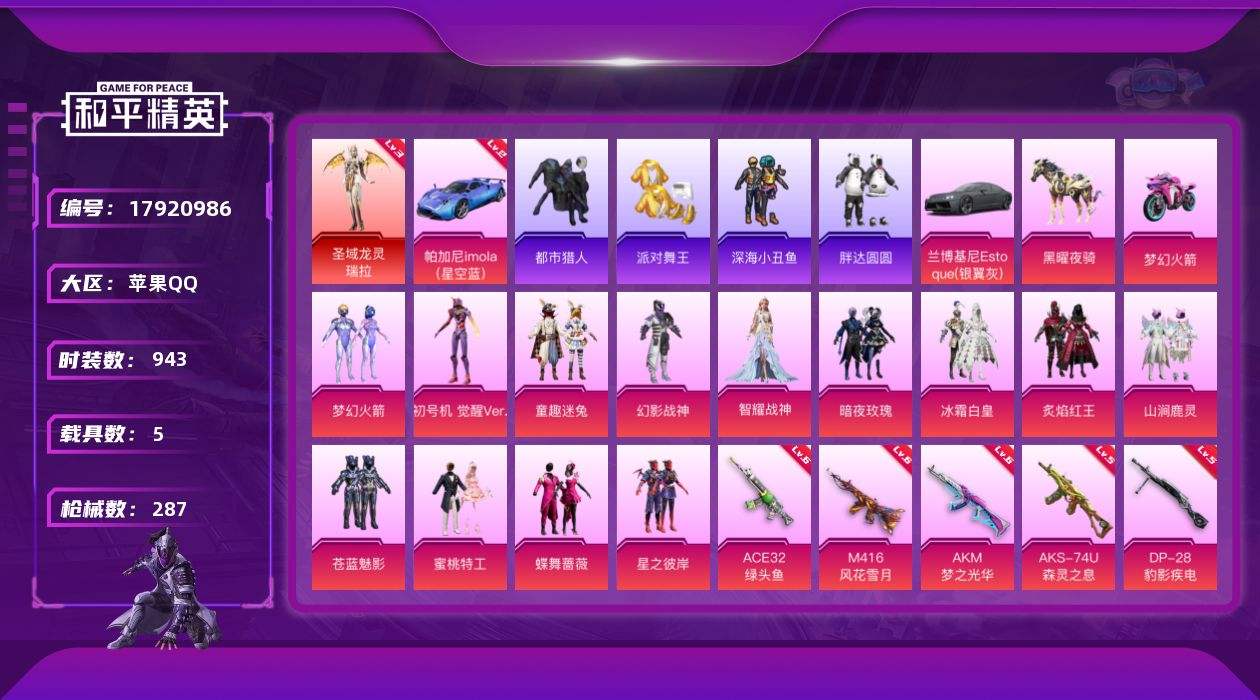 【595023】【可二次】【苹果QQ】龟仙人 双人摩托梦幻火箭 漫步者 都市猎人 苍蓝魅影 Mini14-林间仙鹿 蝶舞蔷薇 M416-仓鼠灰灰 MK47-林间仙鹿 GROZA-林间仙鹿 深海小丑鱼 山涧鹿灵 童趣迷兔 AUG-星之彼岸 醒狮腾龙 纯白誓言 SS1特训 迅捷狂鲨 M762-瑞龙福将 潮萌小黄鸭 狂沙舞者 暗夜玫瑰 AKM-梦之光华 幻海精灵飞行器 UMP45-相思残雪 炙焰红王
