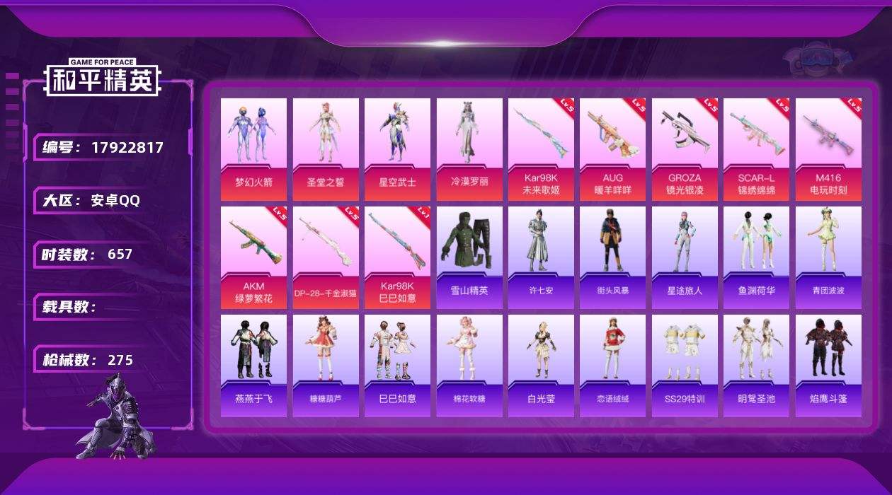 【595377】【不可二次】【安卓QQ】龟仙人 AKM-绿萝繁花 大橘为重 M249-古堡领主 M762-瑞龙福将 星际浪客飞行器 极速红龙 龙翔九天飞行器 Kar98k-未来歌姬 M416-电玩时刻 SCAR-L-锦绣绵绵 梦幻火箭 粉红小猪 瑞龙福将 雪山精英 团圆交子