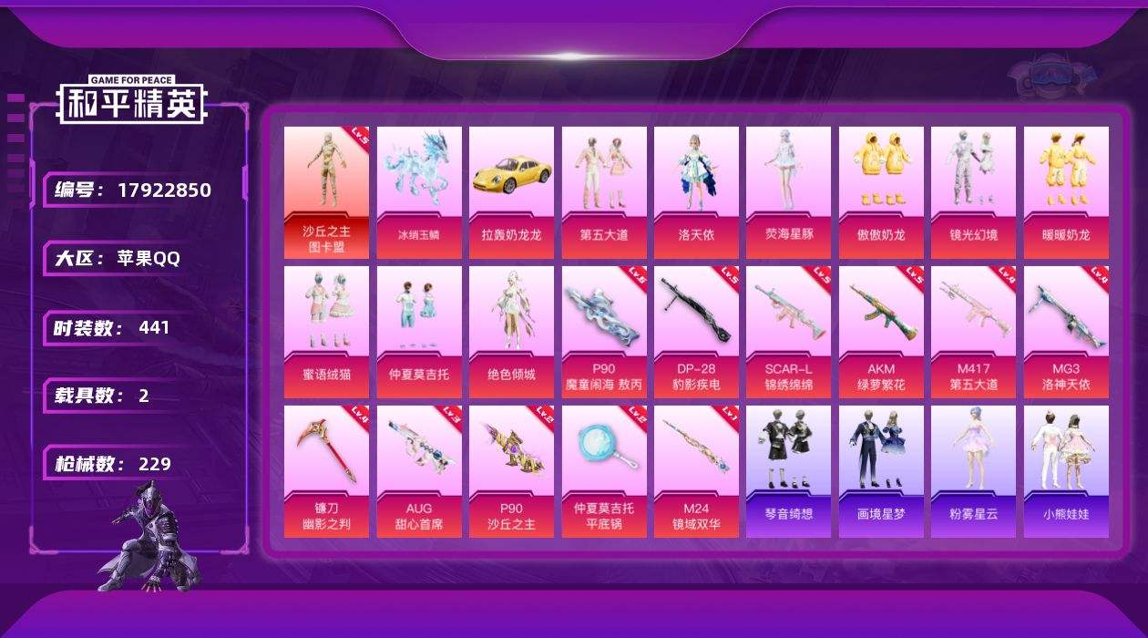 【595378】【不可二次】【苹果QQ】龟仙人 AKM-绿萝繁花 M24-镜域双华 P90-沙丘之主 拉轰奶龙龙 MG3-洛神天依 洛天依 M417射手步枪 平底锅-仲夏莫吉托 AUG-甜心首席 甜心首席飞行器 SCAR-L-锦绣绵绵 沙丘之主-图卡盟 星夜魔法师飞行翼 绝色倾城飞行器 M417-第五大道 镜光幻境飞行翼