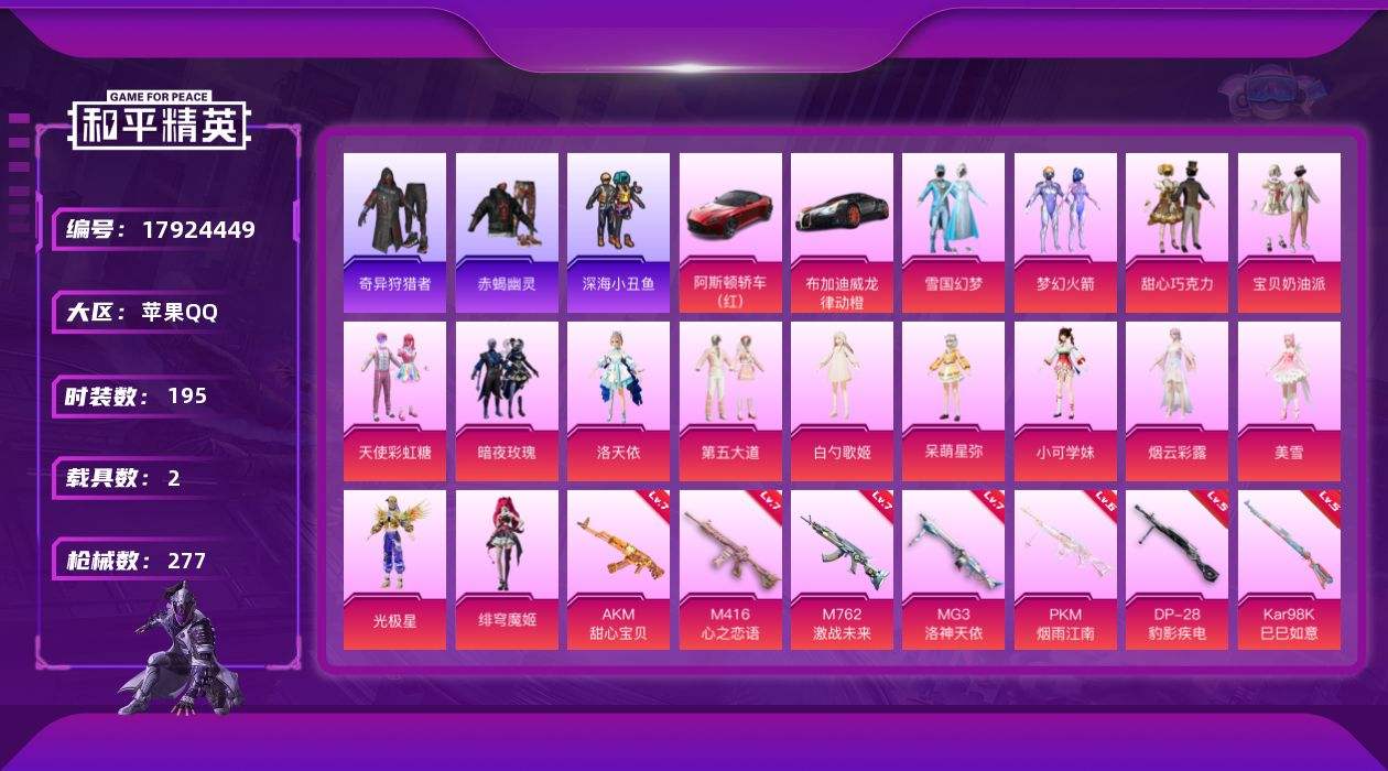 【595538】【不可二次】【苹果QQ】雪国梦幻 M762-激战未来 奇异狩猎者 MG3-洛神天依 甜心巧克力 洛天依 梦幻火箭 暗夜玫瑰 M416-心之恋语 阿斯顿马丁S红色 天使彩虹糖 深海小丑鱼 宝贝奶油派 AKM-甜心宝贝