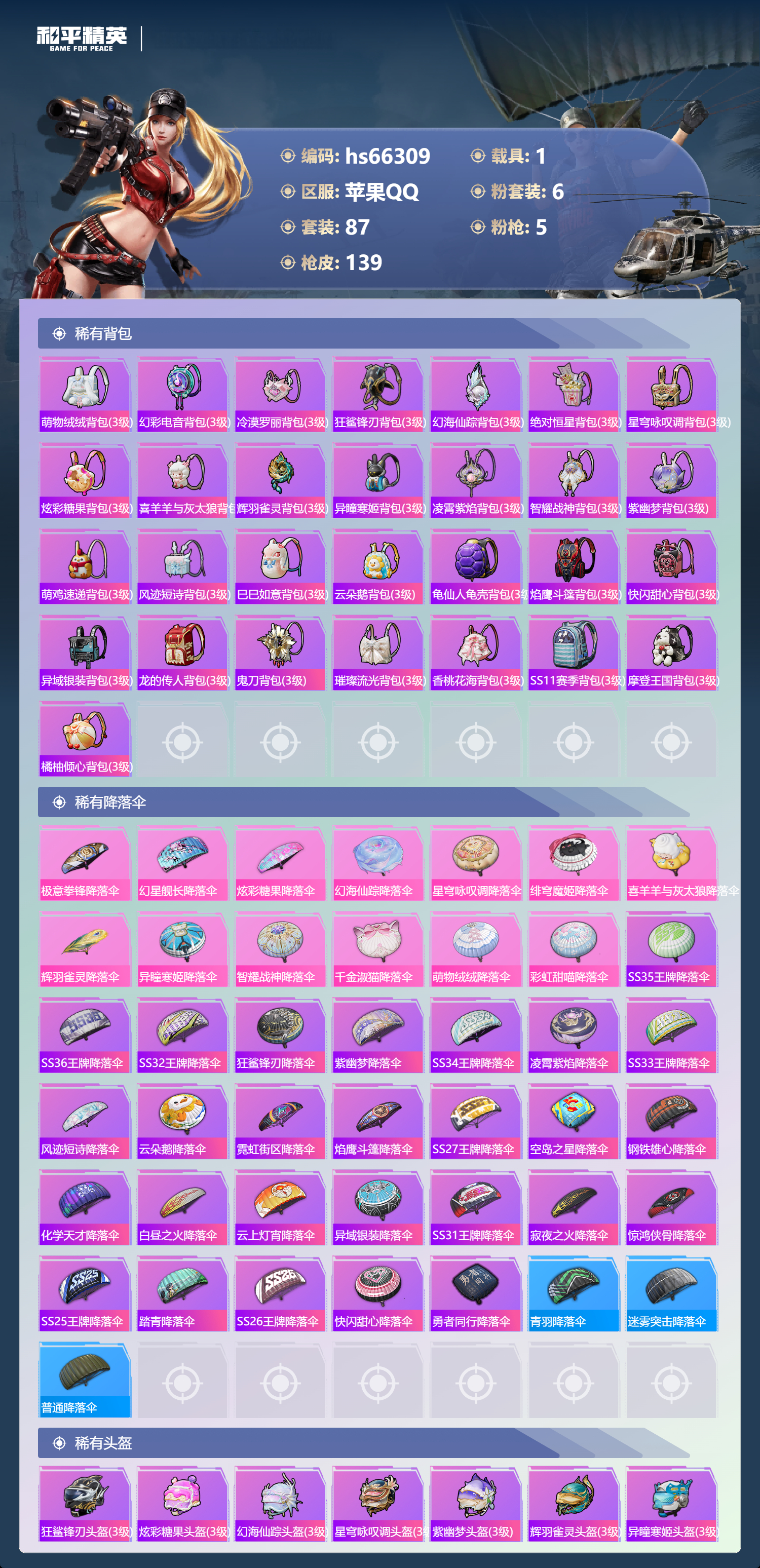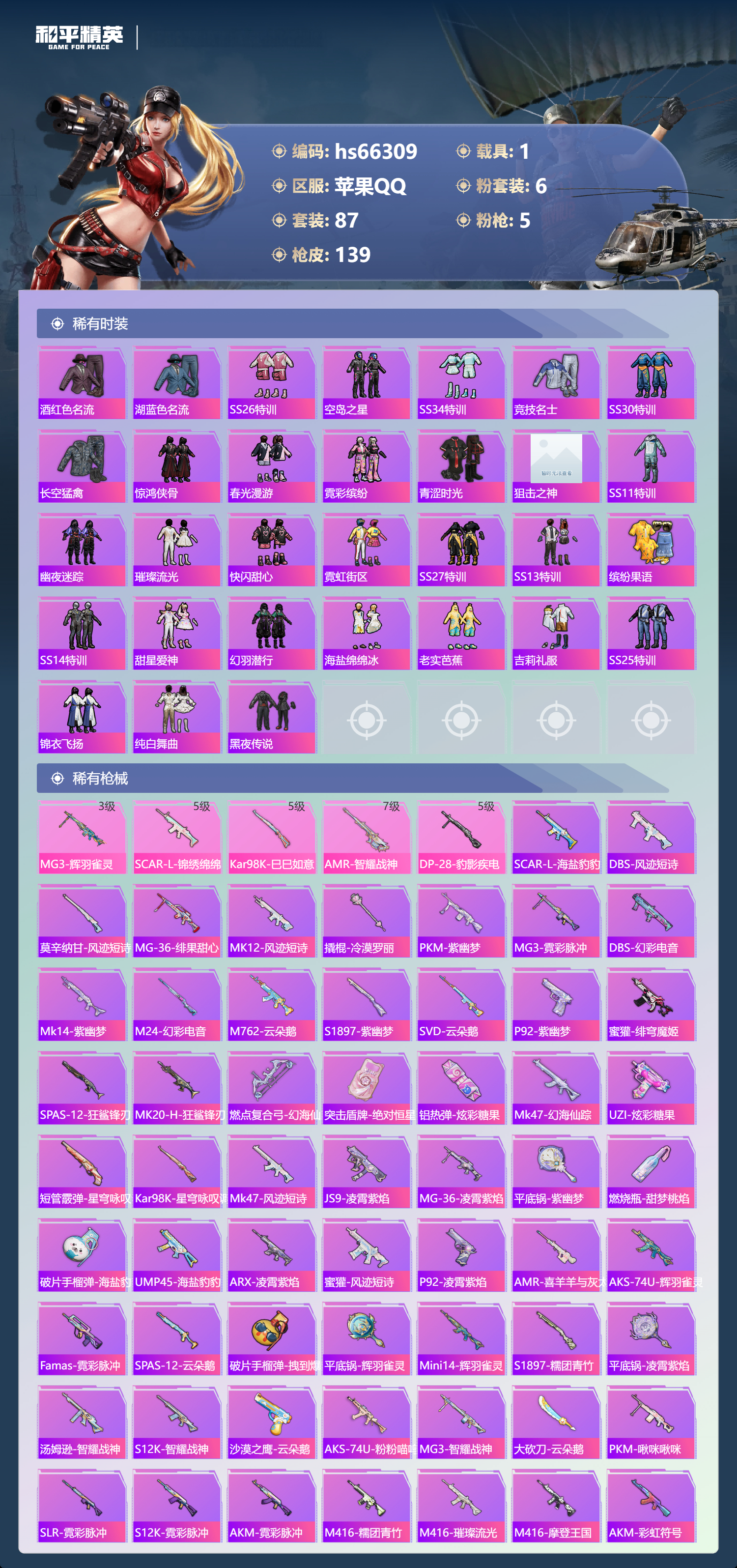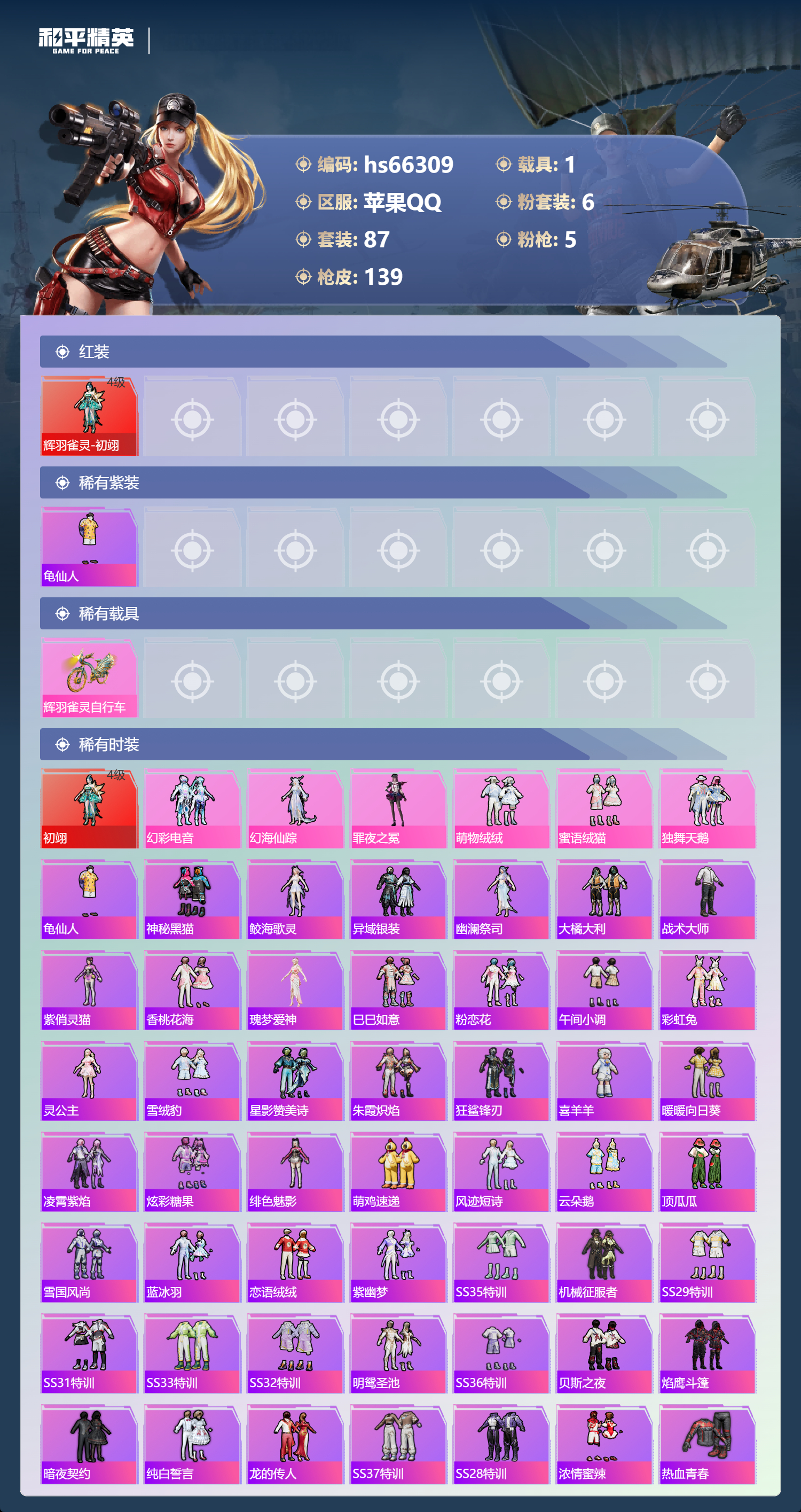 游戏区服:和平精英 / 苹果系统 / QQ帐号