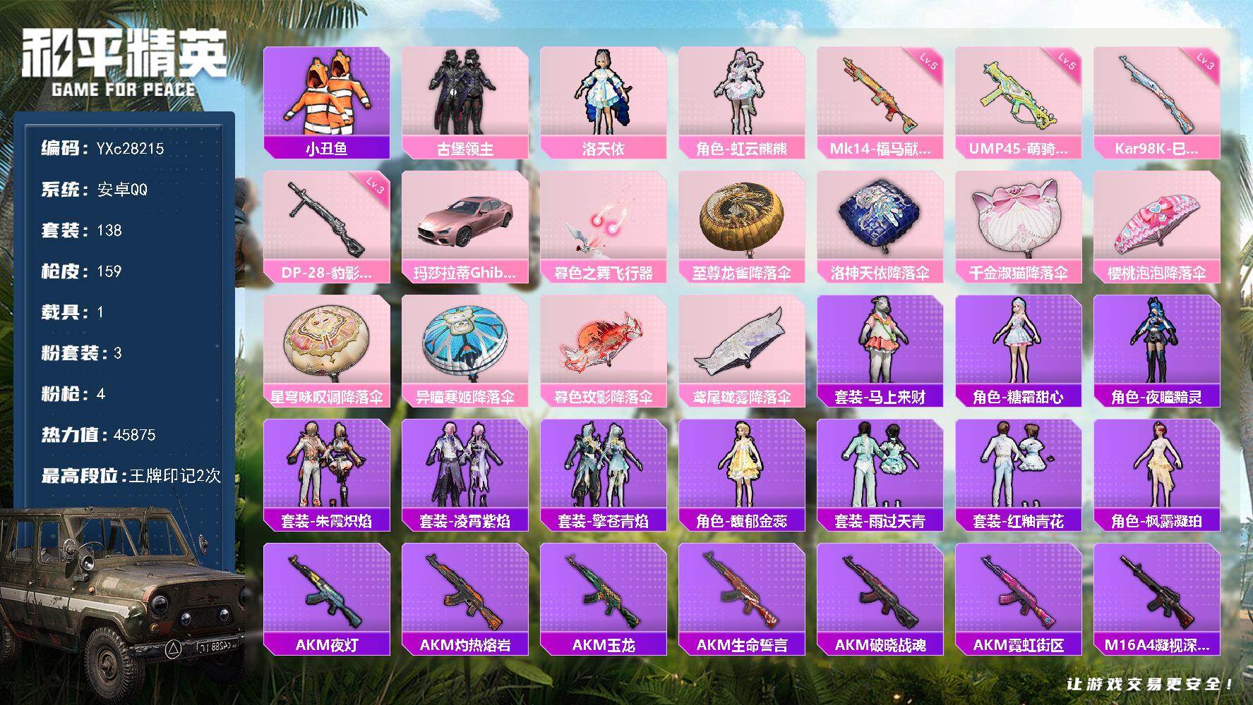 游戏区服:和平精英 / 安卓系统 / QQ账号