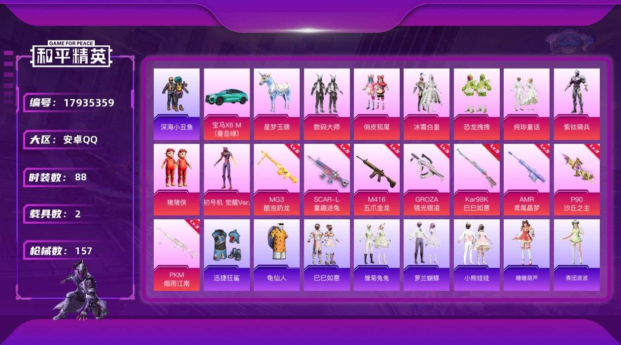 【597061】【可二次】【安卓QQ】恐龙拽拽 M416-五爪金龙 数码大师 深海小丑鱼 SCAR-童趣迷兔 俏皮狐尾