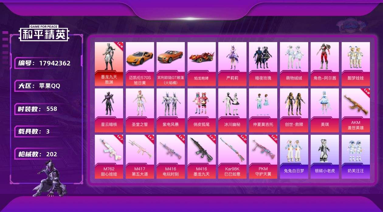 【597806】【可二次】【苹果QQ】龟仙人 PKM-守护天翼 焰龙咆哮 迈凯伦570S 旭日黄 韶华初心 梦起落英 M416-电玩时刻 Mini14-林间仙鹿 软嫩糖心蛋 墨龙九天-敖渊 瑞龙福将 童趣迷兔飞行器 阿狸红飞行器 抹茶蜜豆 梦之呓语 纯白誓言 团圆交子 紫电风暴 破片手榴弹-粉粉猫爪 AKM-盖世英雄 繁龙极客飞行器 M762-瑞龙福将 齐天大圣飞行器 酣梦娃娃 M417射手步枪