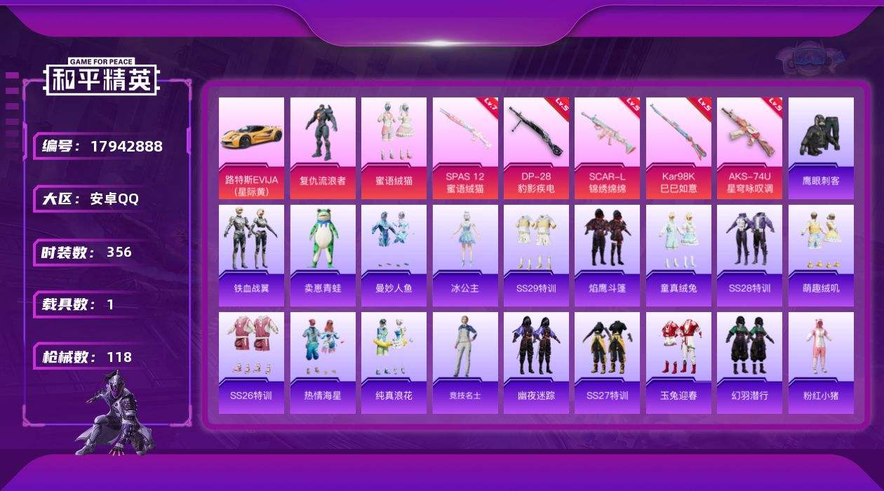 游戏区服:和平精英 / 安卓系统 / QQ账号