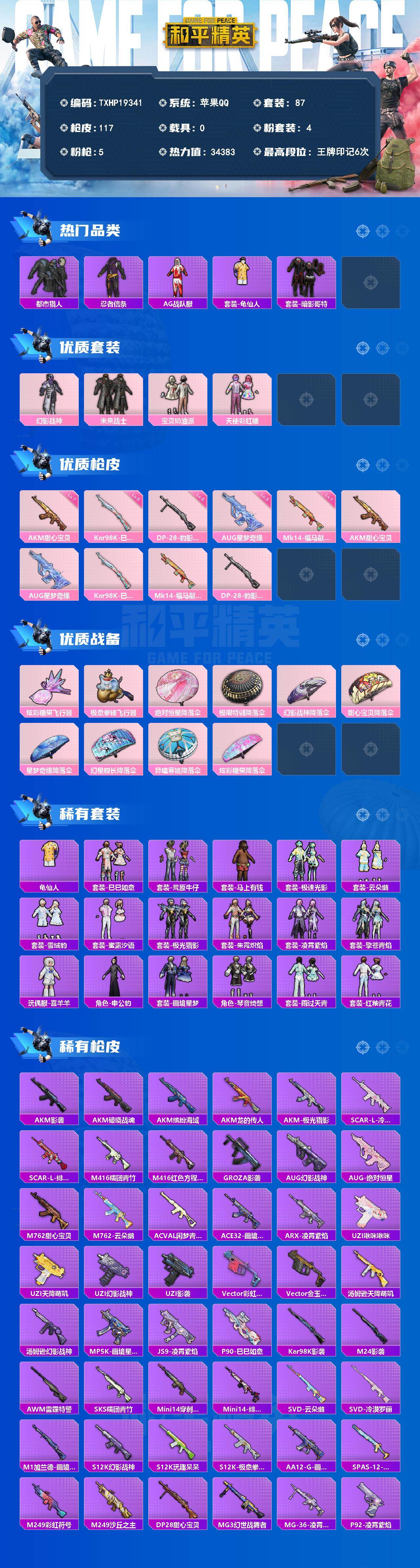 游戏区服:和平精英 / 苹果系统 / QQ帐号