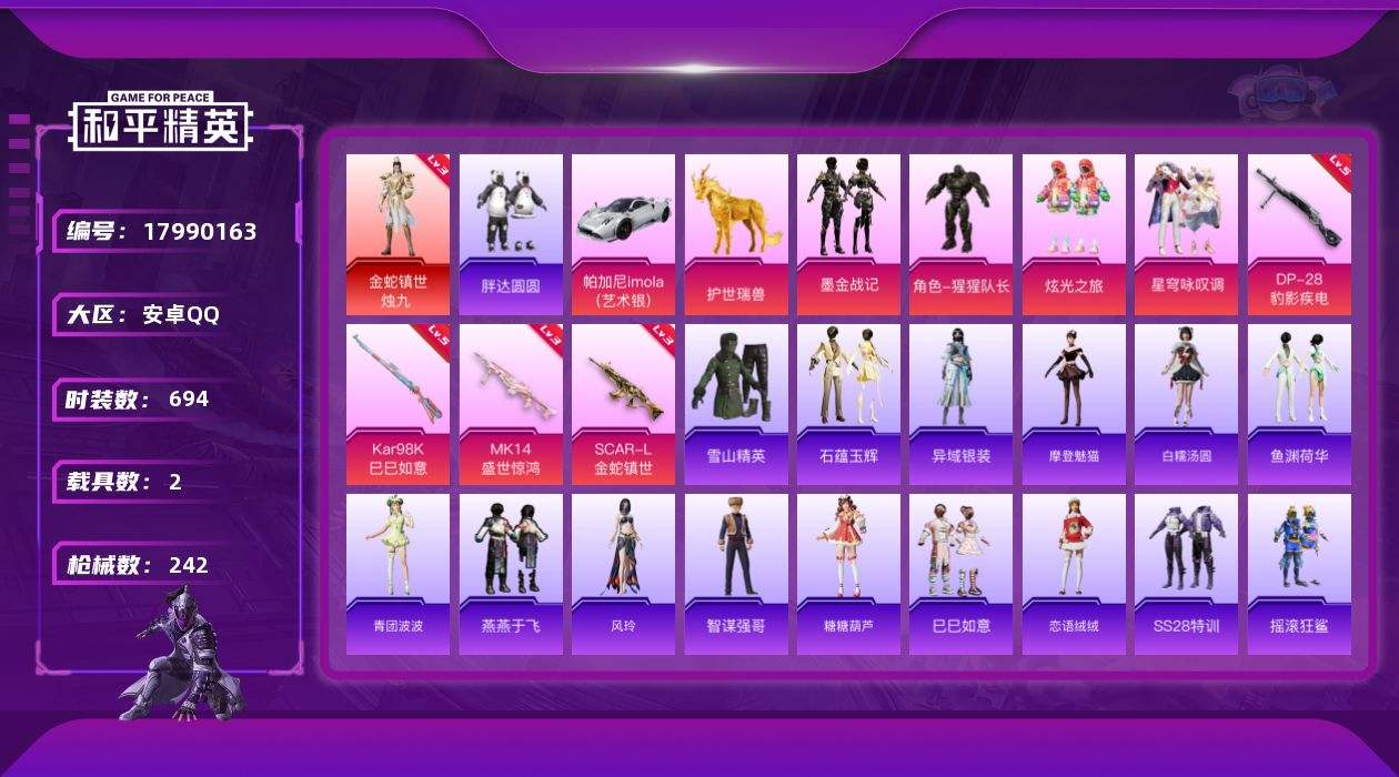 【604717】【不可二次】【安卓QQ】大橘为重 M249-古堡领主 M762-瑞龙福将 金蛇镇世-烛九 极速红龙 白月香洋装 M416-仓鼠灰灰 M24-香水柠檬 瑞龙福将 风华少年志 梦之呓语 雪山精英 胖达圆圆 团圆交子