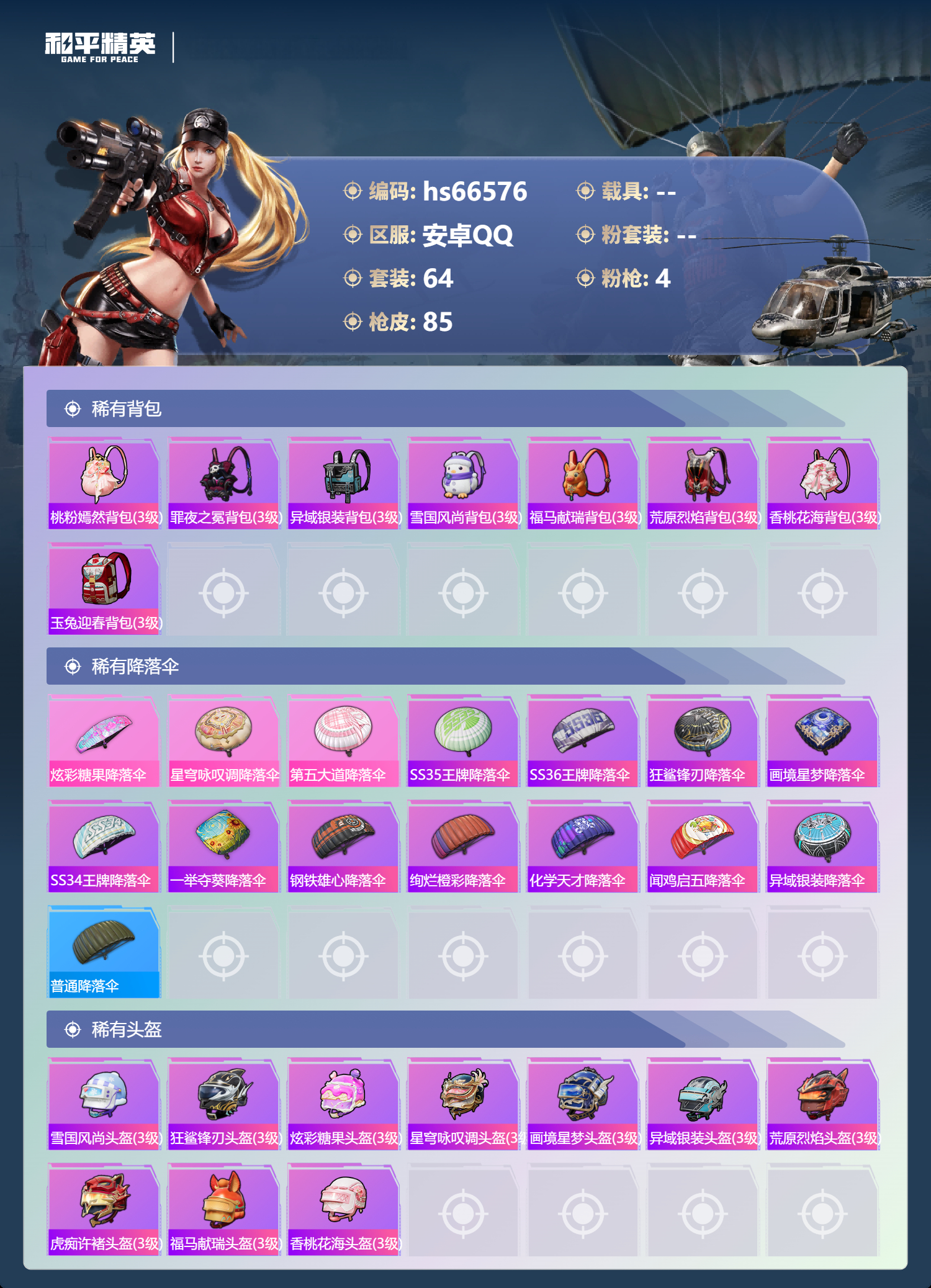 游戏区服:和平精英 / 安卓系统 / QQ账号