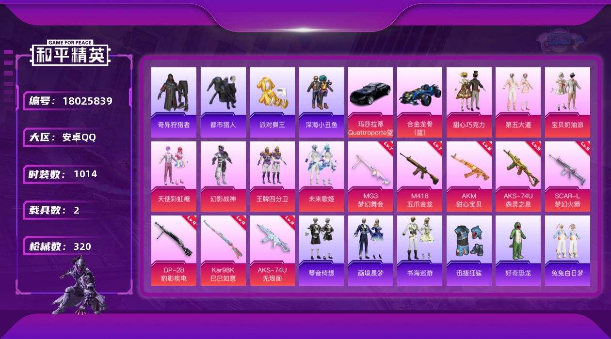 【609548】【不可二次】【安卓QQ】合金龙骨蓝色 龟仙人 S686-奇异狩猎者 M416-五爪金龙 王牌四分卫 漫步者 都市猎人 M249-古堡领主 极速红龙 豚鼠丹丹 太空嘟嘟飞行器 恶魔人蛛 浪漫假日 深海小丑鱼 瑞龙福将 浪漫天命 MG3-梦幻舞会 AKM-甜心宝贝 团圆交子 SCAR-L-梦幻火箭 SS1特训 AUG-PEC最牛战神 迅捷狂鲨 奇异狩猎者 M762-瑞龙福将 SCAR