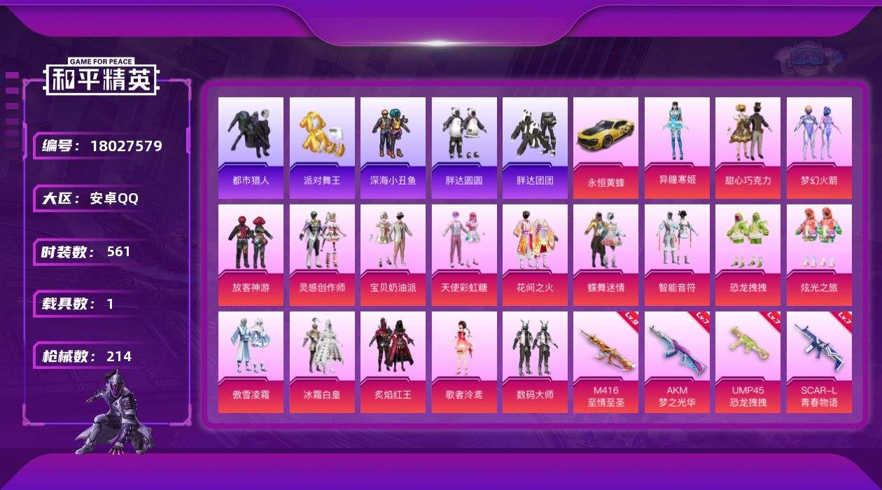 【609800】【可二次】【安卓QQ】龟仙人 AKM-绿萝繁花 恐龙拽拽 水银刺客 S686-奇异狩猎者 漫步者 花间之火 都市猎人 炙焰红王 极速红龙 UMP45-恐龙拽拽 豚鼠丹丹 M762-奇异狩猎者 庄周梦蝶飞行器 放客神游 M416-至情至圣 深海小丑鱼 瑞龙福将 智能音符 蝶舞迷情 醒狮腾龙 浪漫天命 梦幻火箭飞行器 胖达团团 胖达圆圆 团圆交子 M762-瑞龙福将 齐天大圣飞行器