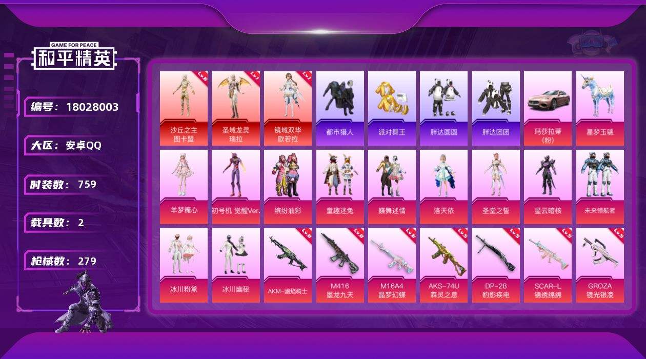 【609884】【不可二次】【安卓QQ】M762-青锋波束 M416-五爪金龙 漫步者 P90-沙丘之主 都市猎人 洛天依 镜域双华-欧若拉 沙丘之主-图卡盟 缤纷油彩 浪漫波比 童趣迷兔 瑞龙福将 激萌小黄鸭 蝶舞迷情 浪漫天命 激萌罗小黑 胖达团团 纯白誓言 胖达圆圆 团圆交子 M24-镜域双华 星梦玉骢 M762-瑞龙福将 潮萌小黄鸭 黑色刀锋 MG3-洛神天依 龙翔九天飞行器 萌物绒绒飞
