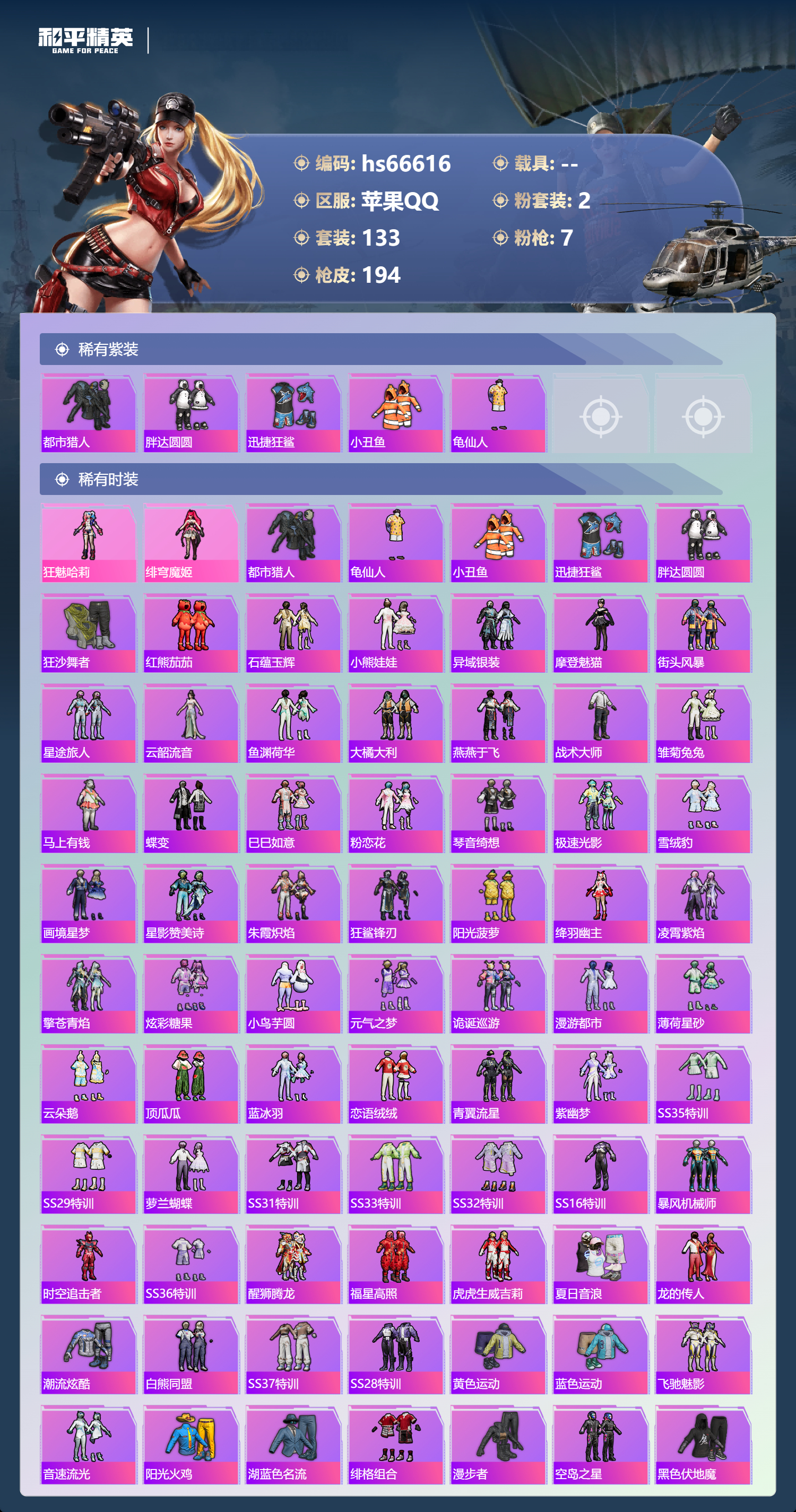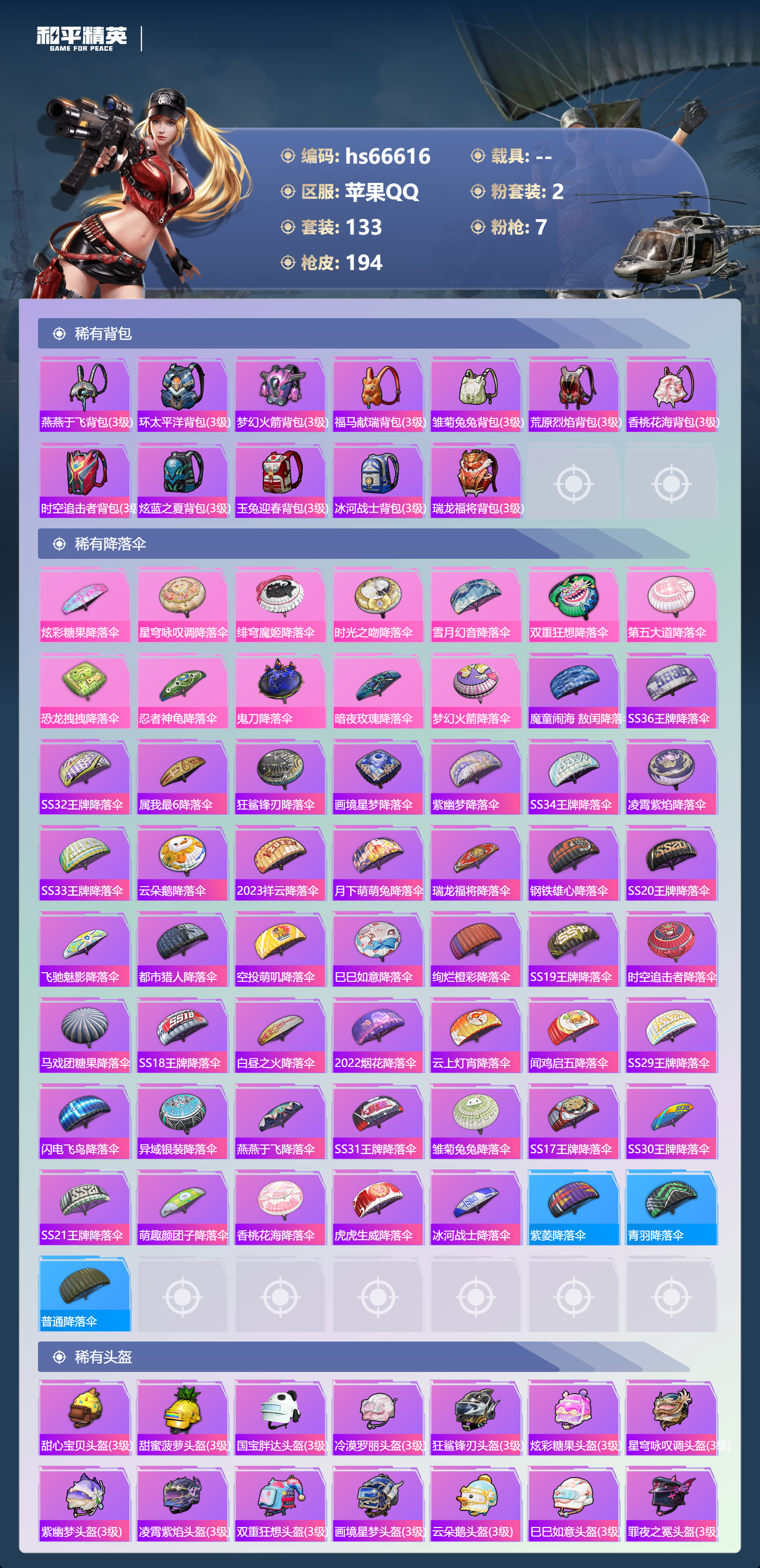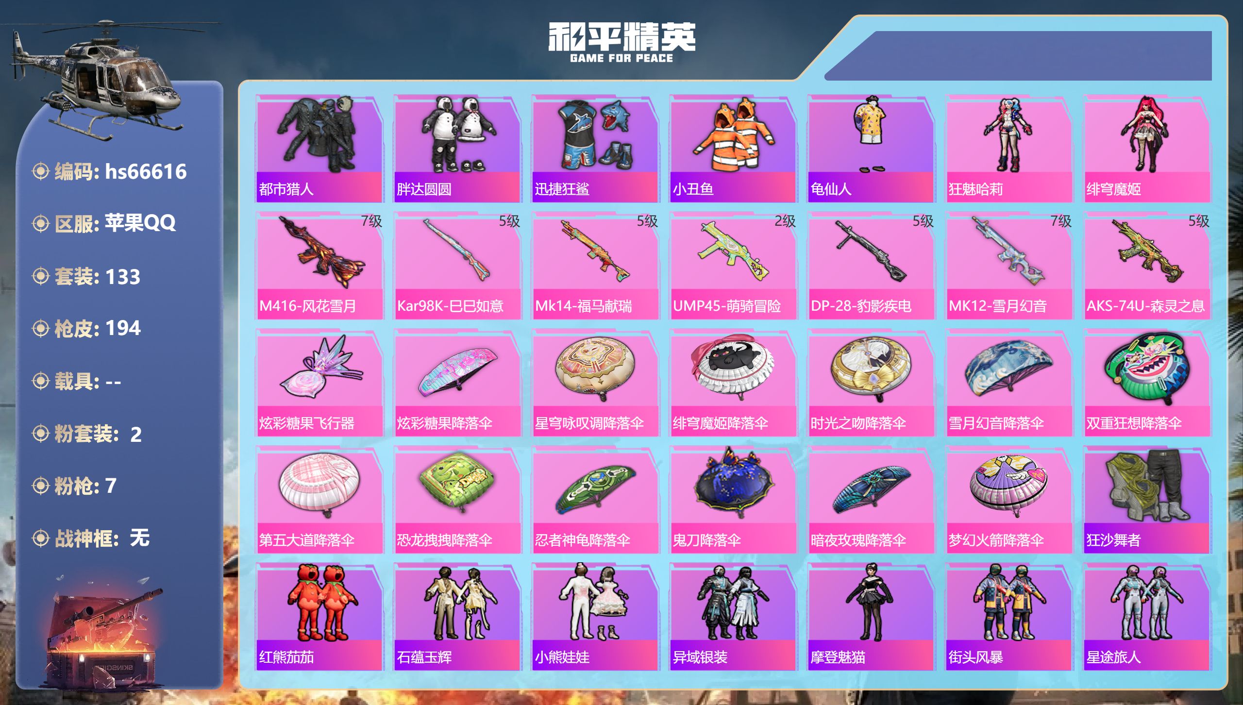 游戏区服:和平精英 / 苹果系统 / QQ帐号