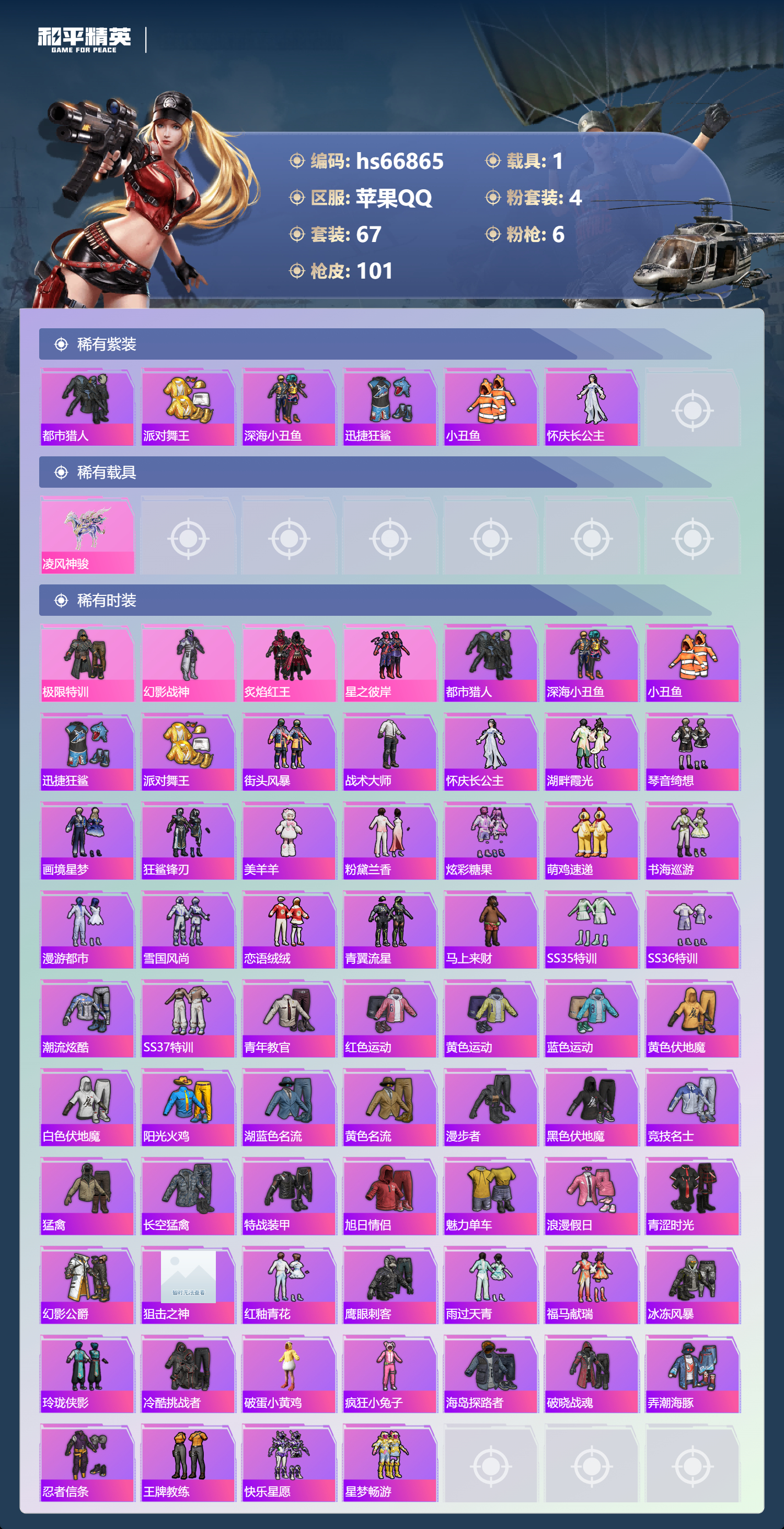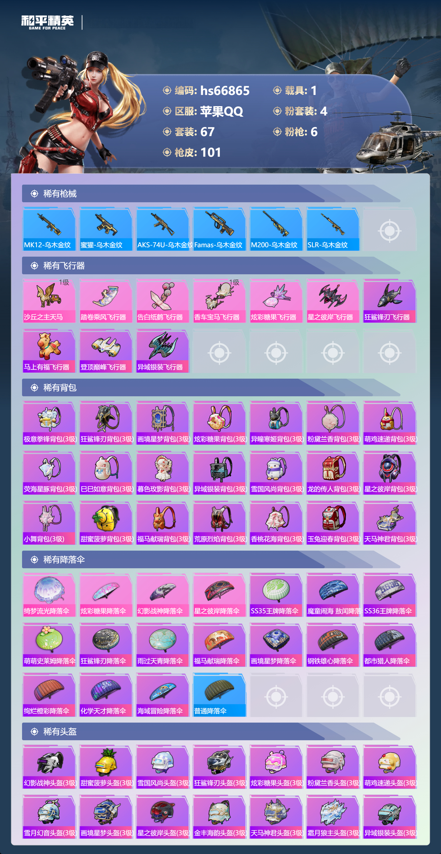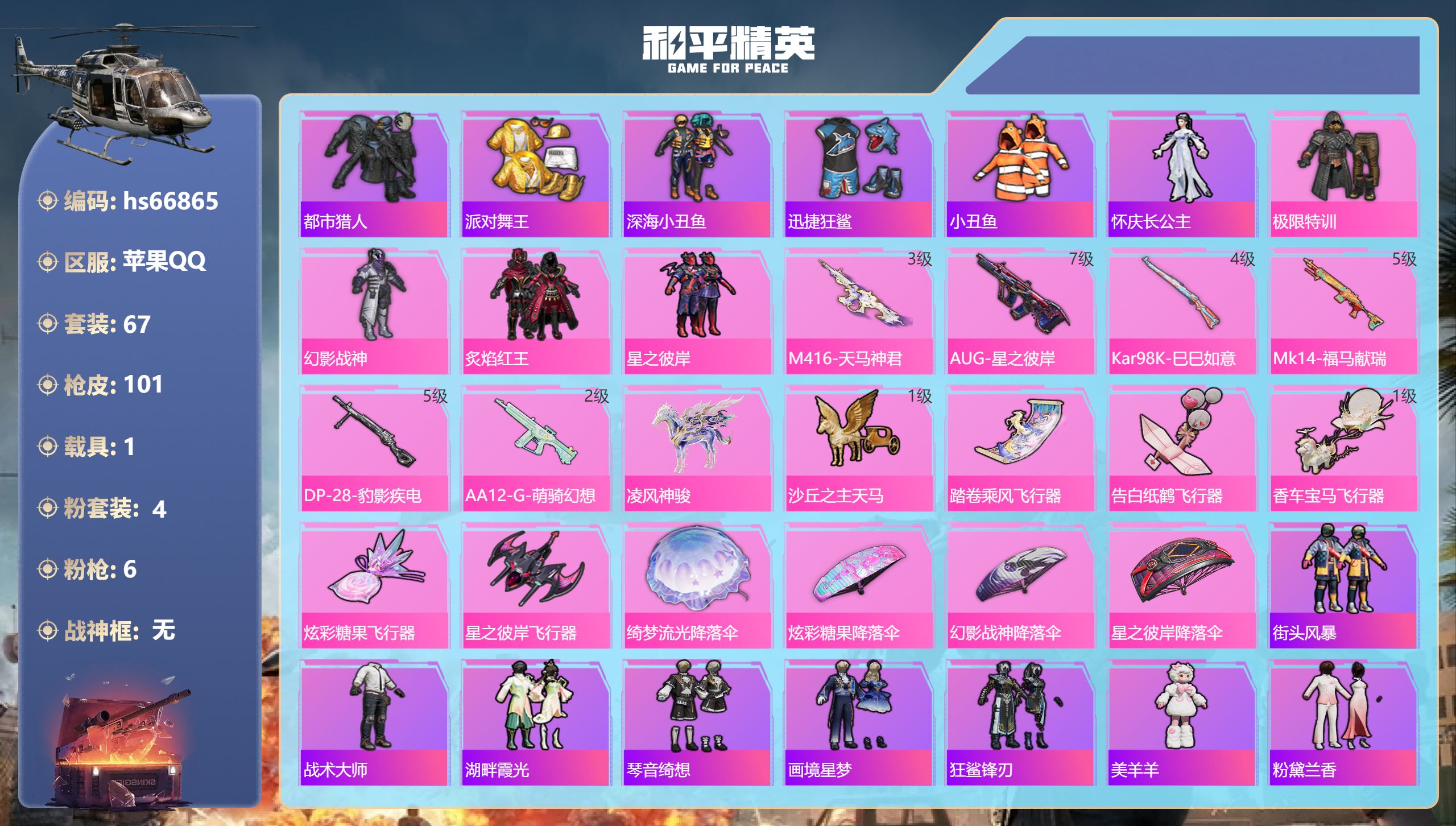 游戏区服:和平精英 / 苹果系统 / QQ帐号