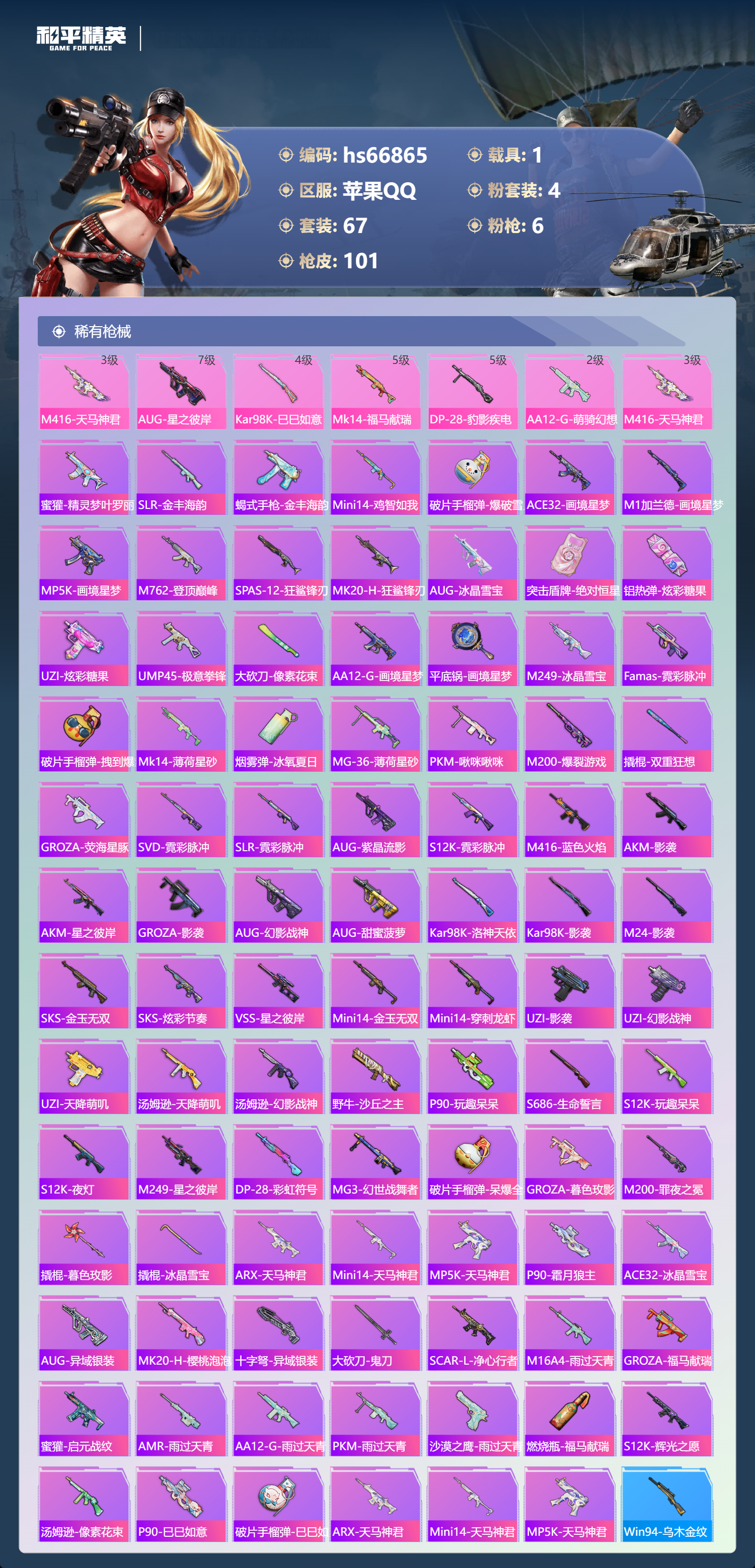 【610242】【不可二次】【苹果QQ】漫步者 都市猎人 迅捷狂鲨 炙焰红王 星之彼岸飞行器 极限特训 忍者信条 星之彼岸 浪漫假日 深海小丑鱼 幻影战神 派对舞王 AUG-星之彼岸