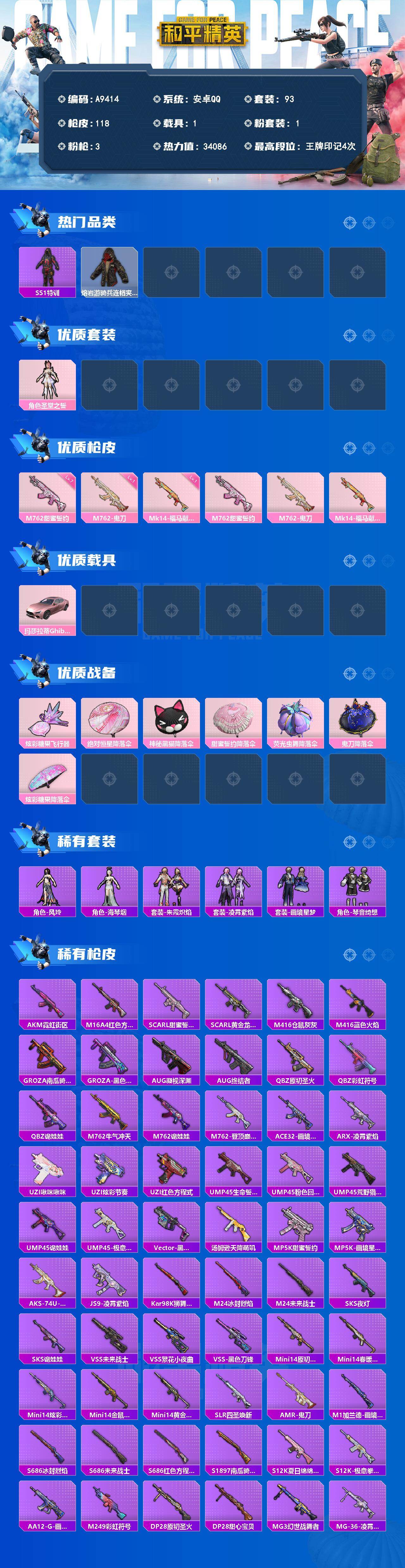 游戏区服:和平精英 / 安卓系统 / QQ账号