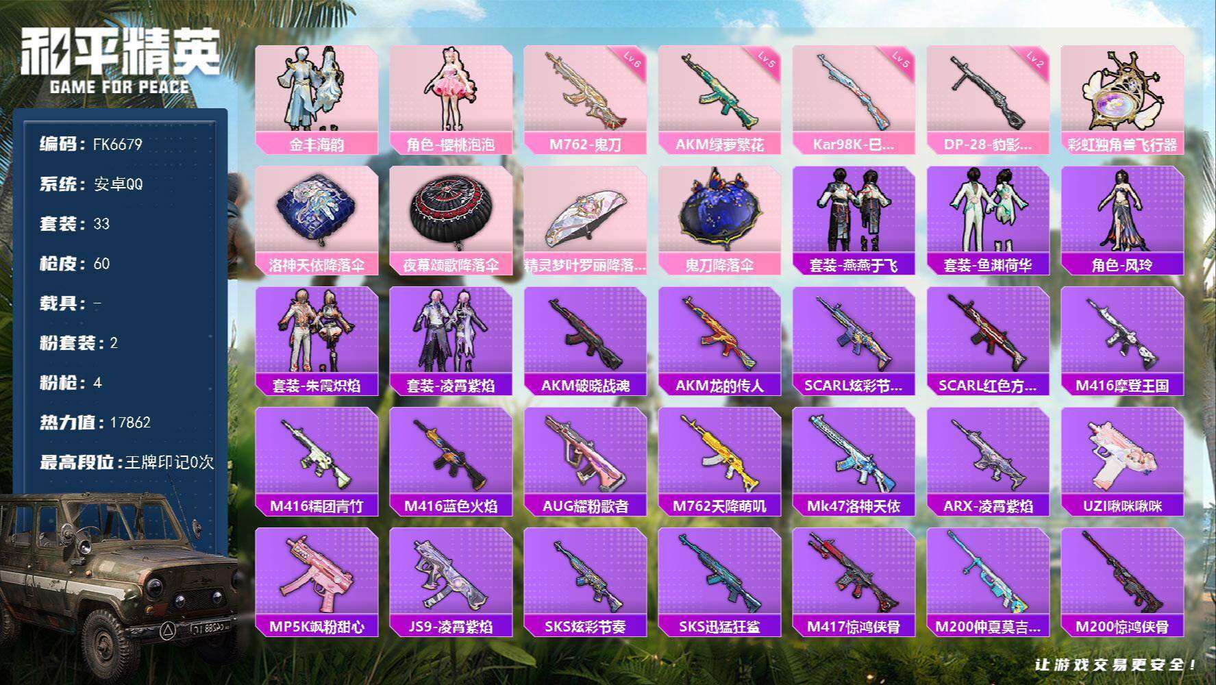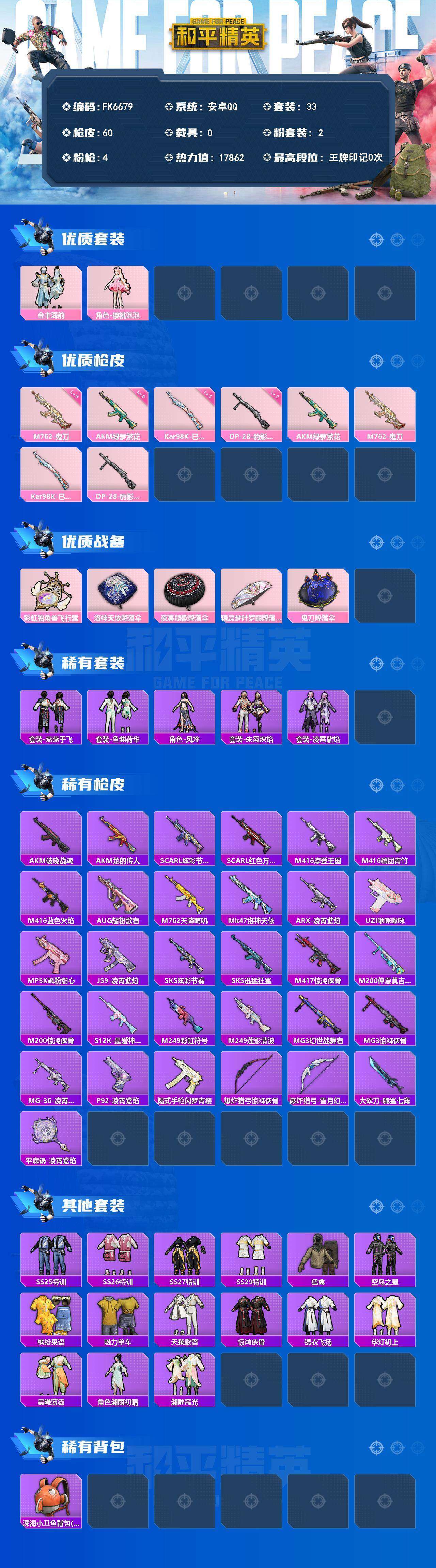 游戏区服:和平精英 / 安卓系统 / QQ账号