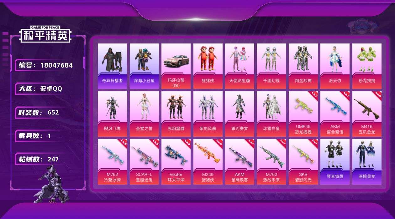 【612178】【不可二次】【安卓QQ】龟仙人 恐龙拽拽 大橘为重 S686-奇异狩猎者 AKM-星际浪客 M416-五爪金龙 漫步者 M24-奇异狩猎者 M249-古堡领主 洛天依 UMP45-恐龙拽拽 豚鼠丹丹 M762-奇异狩猎者 赤焰黑爵 银刃赛罗 激战未来飞行器 深海小丑鱼 SCAR-童趣迷兔 AWM-激战未来 猪猪侠 激萌罗小黑 AKM-奇异狩猎者 紫电风暴 AKM-山经魅狐 软萌银