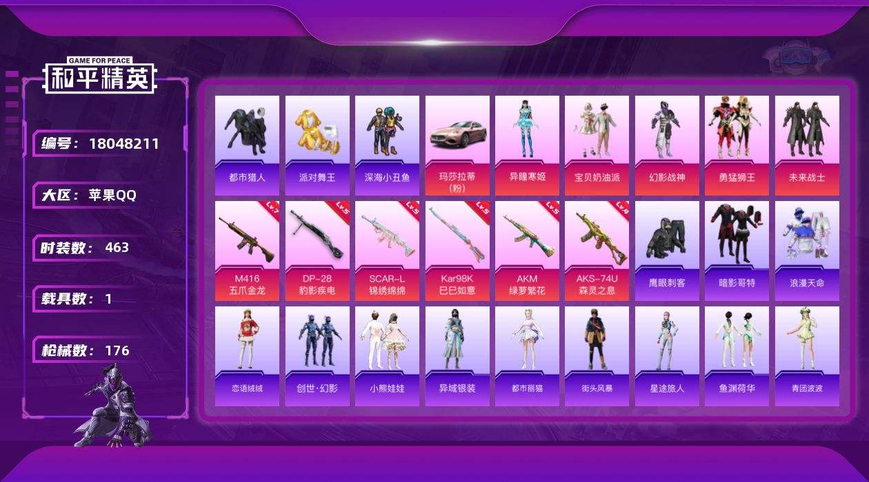 【612343】【不可二次】【苹果QQ】龟仙人 AKM-绿萝繁花 水银刺客 M416-五爪金龙 漫步者 都市猎人 炎氏战神飞行翼 SCAR-L-锦绣绵绵 深海小丑鱼 宝贝奶油派 幻影战神 玛莎拉蒂粉色 派对舞王 未来战士 M416-黄金龙骨 浪漫天命 暗影哥特