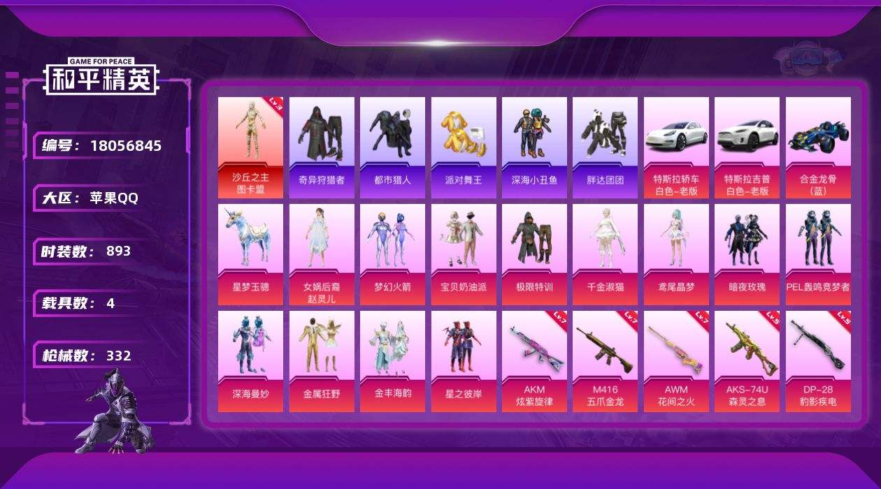 【613928】【不可二次】【苹果QQ】合金龙骨蓝色 龟仙人 水银刺客 M416-五爪金龙 漫步者 M416-星际漫游 都市猎人 特斯拉3银色 特斯拉X白色 金属狂野 极限特训 极速红龙 忍者信条 沙丘之主-图卡盟 星之彼岸 深海小丑鱼 瑞龙福将 M416-黄金龙骨 醒狮腾龙 浪漫天命 深海曼妙飞行器 AWM-黄金龙骨 胖达团团 纯白誓言 团圆交子 深海曼妙 星梦玉骢 特斯拉3白色 奇异狩猎者