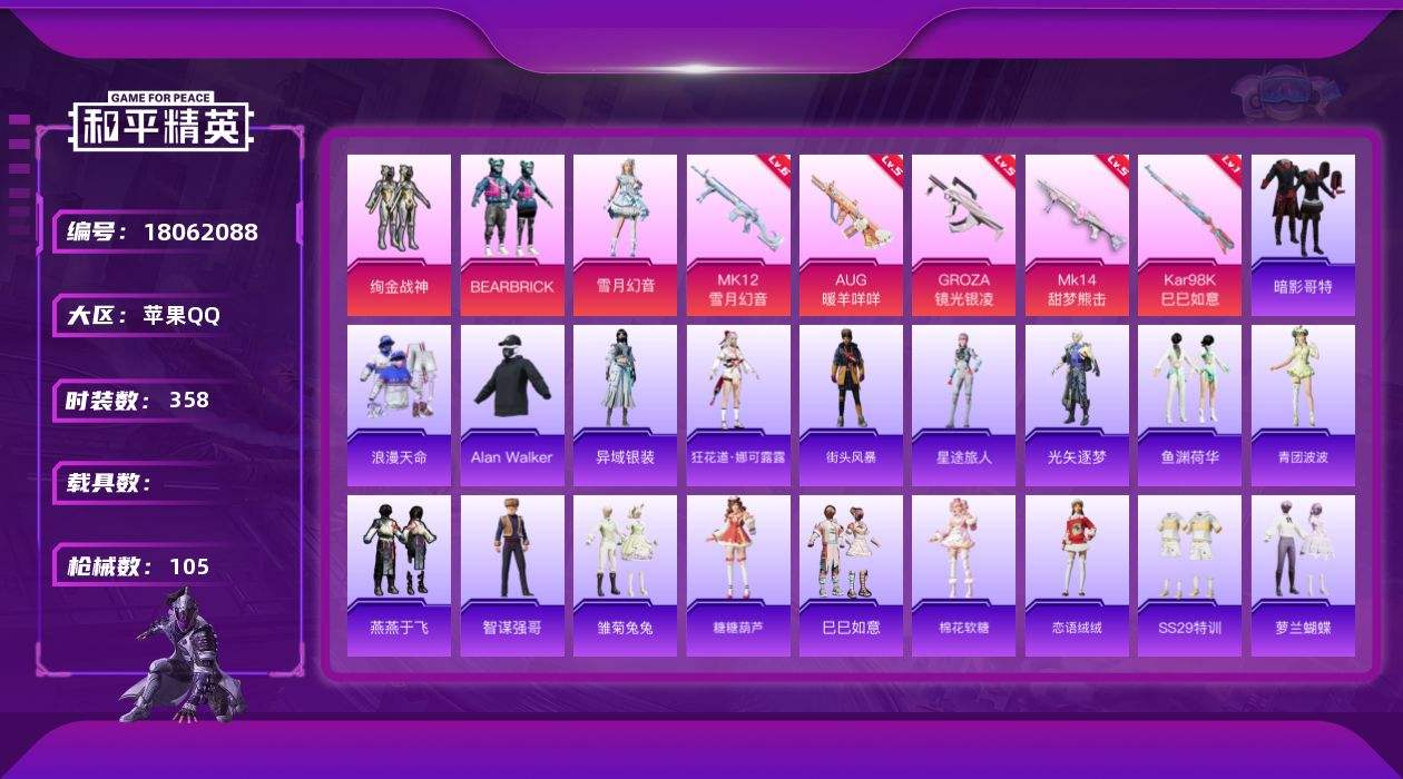 游戏区服:和平精英 / 苹果系统 / QQ帐号