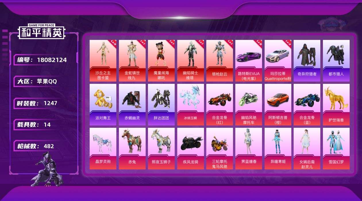 【617182】【可二次】【苹果QQ】合金龙骨蓝色 路特斯EV紫色 M762-甜蜜誓约 都市猎人 MK14-闲梦青缨 沙丘之主-图卡盟 M416-心之恋语 缤纷油彩 黄螳螂 山涧鹿灵 魔童闹海-哪吒 SCAR-童趣迷兔 童趣迷兔 M416-超新星 AUG-星之彼岸 合金龙骨红色 怪诞乔克 S12K-海渊国主 Vector-环太平洋 暗夜玫瑰 AKM-梦之光华 UMP45-相思残雪 SKS-碧影闪