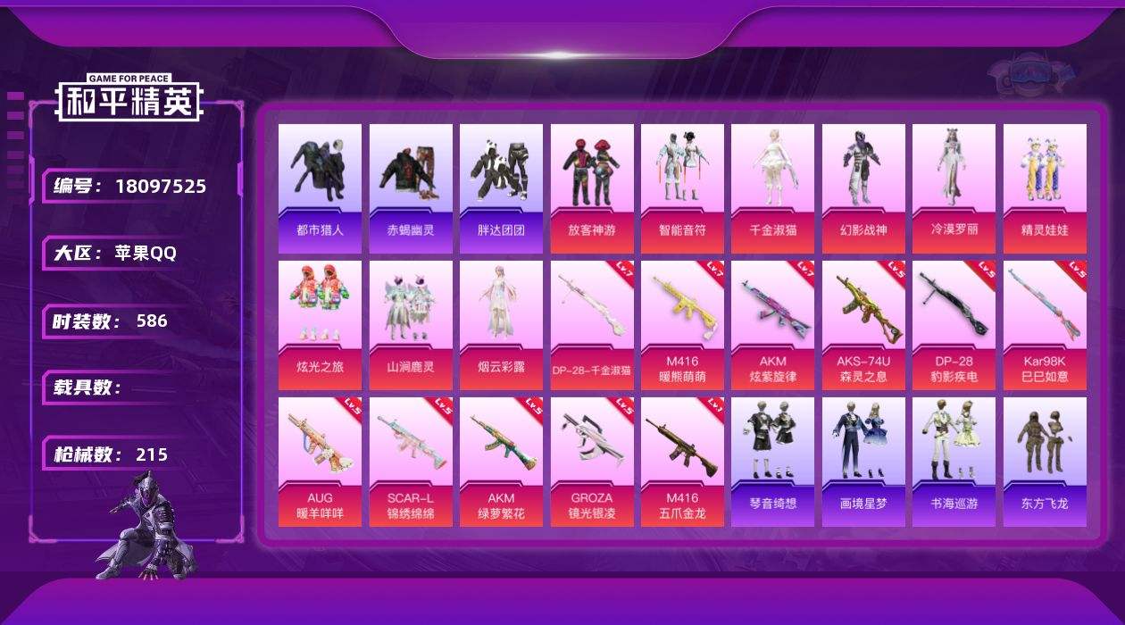 【619320】【可二次】【苹果QQ】龟仙人 AKM-绿萝繁花 M416-五爪金龙 漫步者 都市猎人 东方飞龙 忍者信条 赤蝎幽灵 SCAR-L-锦绣绵绵 Mini14-林间仙鹿 AKM-炫紫旋律 放客神游 精灵娃娃 暗夜之虎 M416-暖熊萌萌 山涧鹿灵 幻影战神 智能音符 裁决冥王 胖达团团