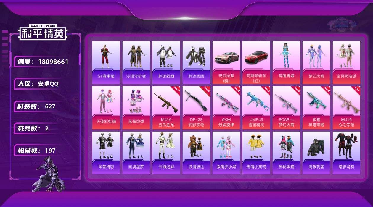 【619522】【不可二次】【安卓QQ】蓝莓炮弹 S686-奇异狩猎者 M416-五爪金龙 M24-奇异狩猎者 UMP4雪国精灵 M416-仓鼠灰灰 M416-心之恋语 心之恋语飞行翼 浪漫波比 瑞龙福将 激萌小黄鸭 沙漠守护者 浪漫天命 梦幻火箭飞行器 激萌罗小黑 胖达团团 胖达圆圆 团圆交子 SCAR-L-梦幻火箭 SS1特训 M762-瑞龙福将 SCAR-L梦幻火箭 潮萌小黄鸭 UMP45