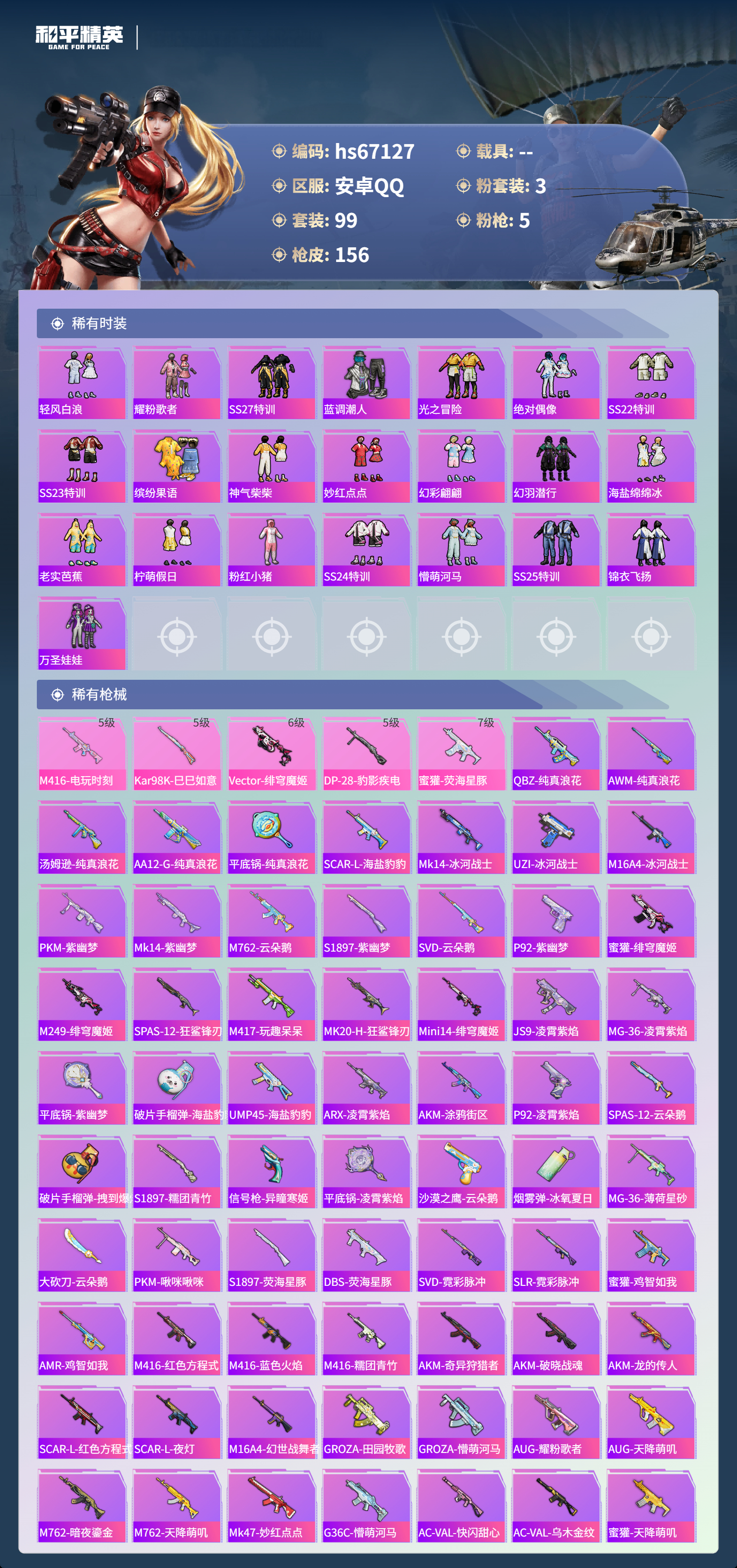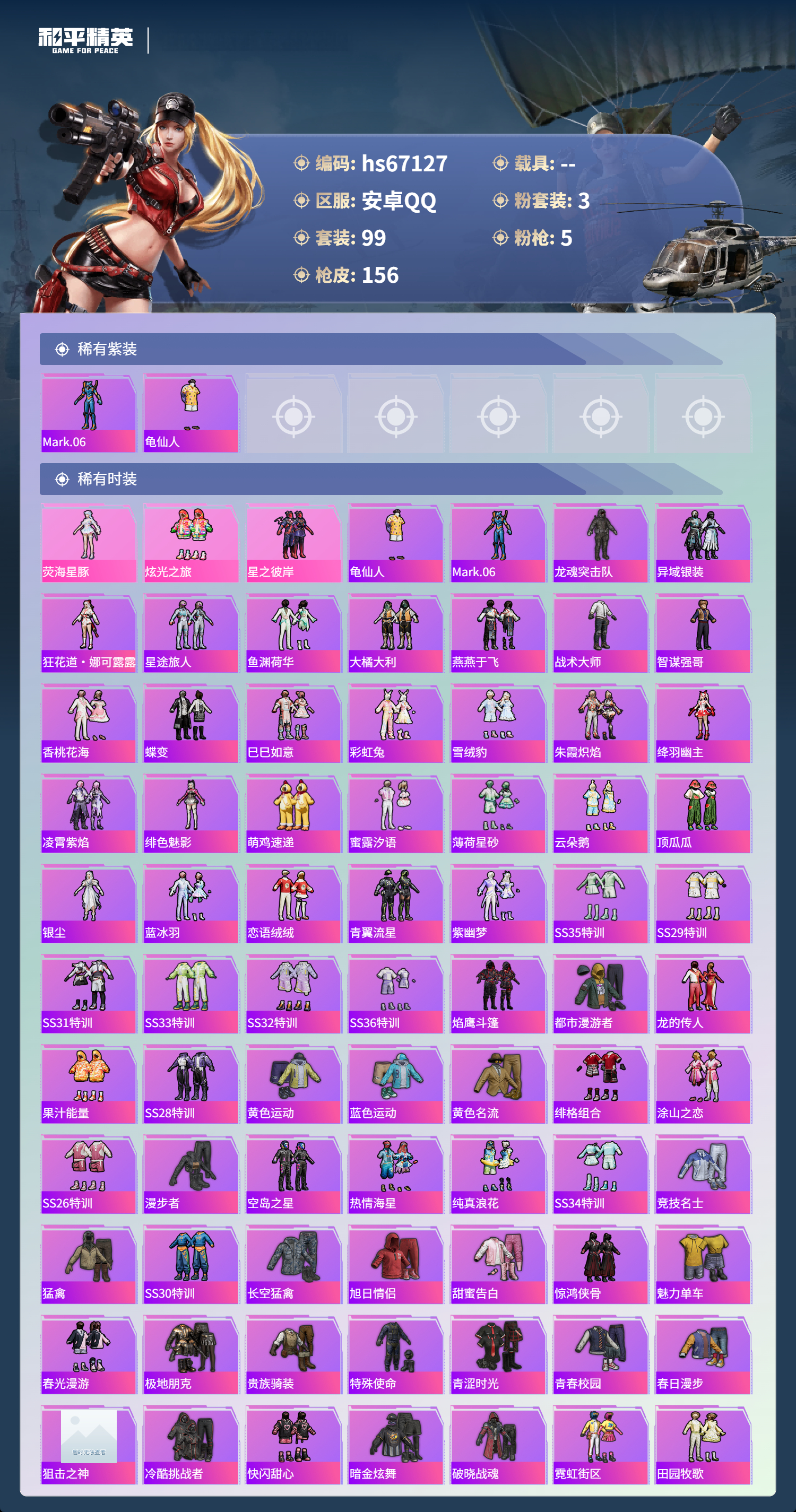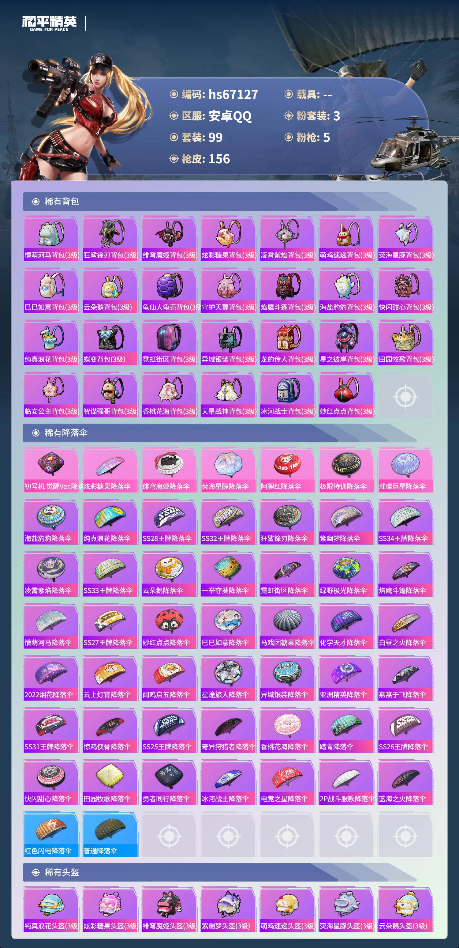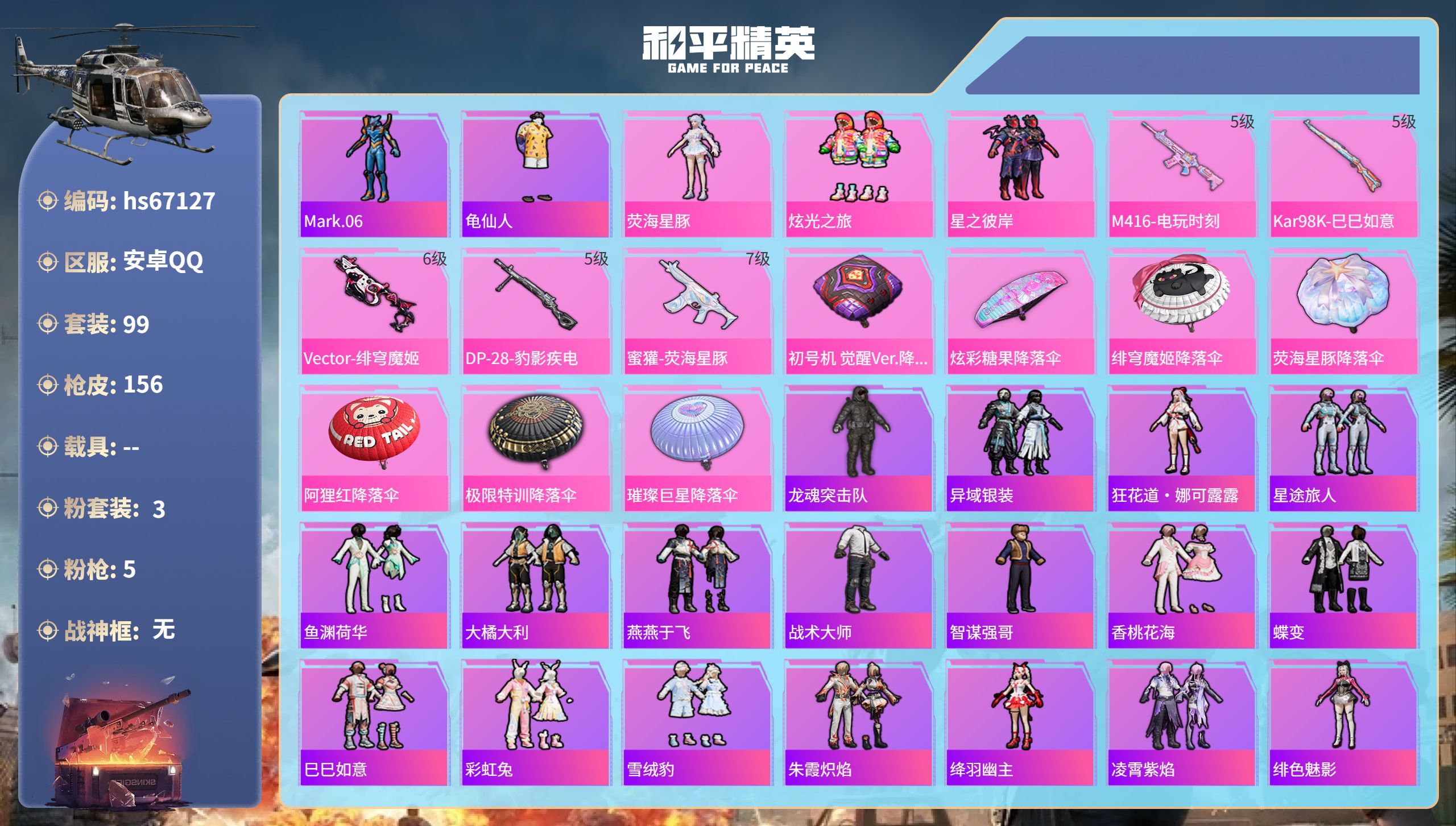 游戏区服:和平精英 / 安卓系统 / QQ账号