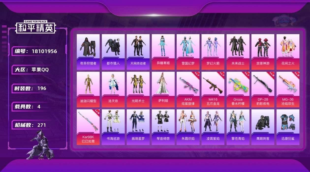 【620098】【不可二次】【苹果QQ】AKM-炫紫旋律 放客神游 闪耀迪迦型 梦幻火箭 雪国梦幻 M416-五爪金龙 奇异狩猎者 东方飞龙 洛天依 未来战士 GROZA-香水柠檬