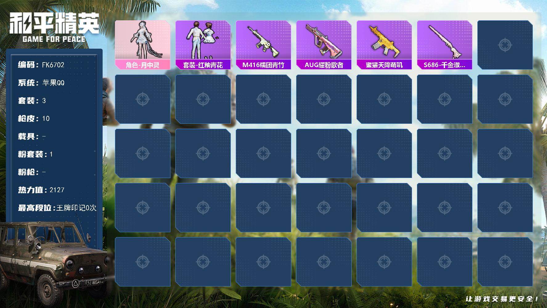 游戏区服:和平精英 / 苹果系统 / QQ帐号