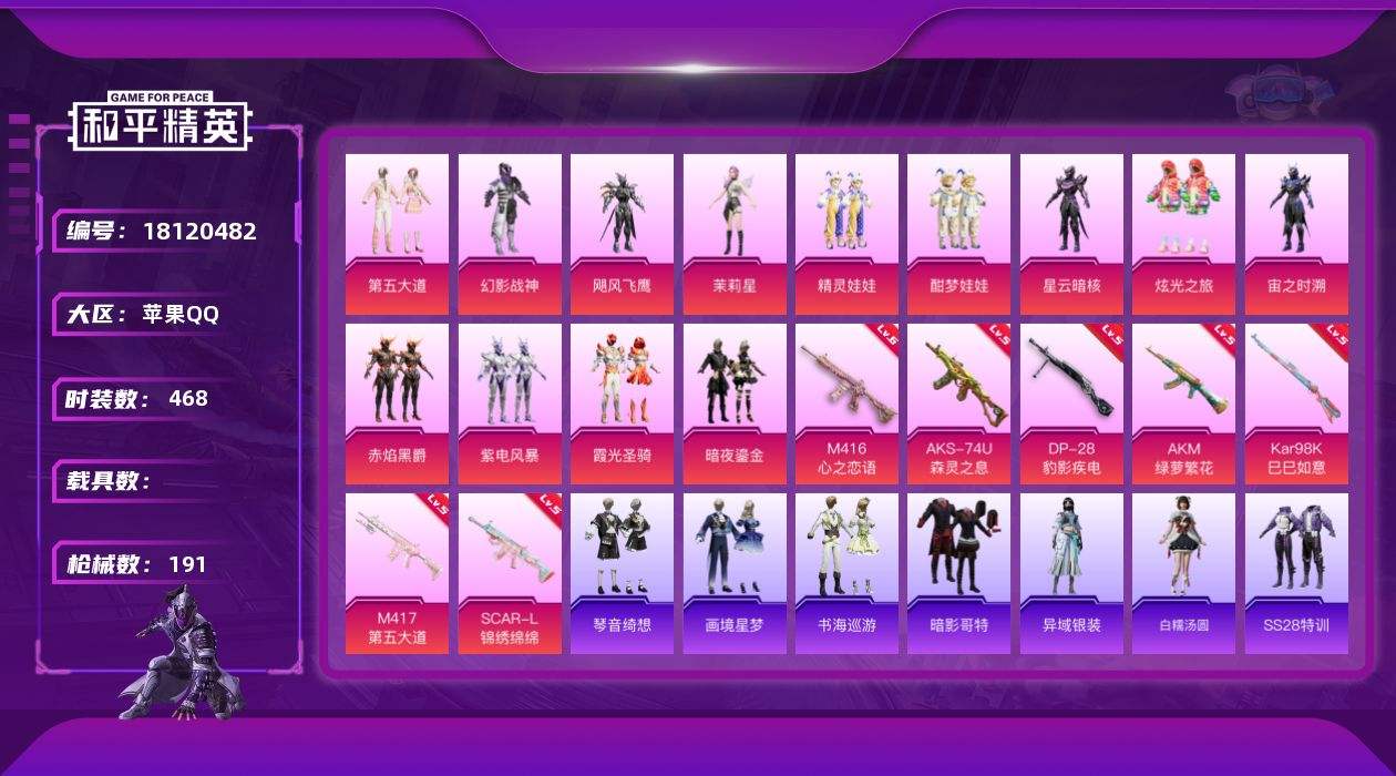 【622030】【可二次】【苹果QQ】紫电风暴 龟仙人 AKM-绿萝繁花 飓风飞鹰 酣梦娃娃 M417射手步枪 SCAR-L-锦绣绵绵 赤焰黑爵 精灵娃娃 M416-心之恋语 粉红小猪 幻影战神 M417-第五大道 暗影哥特 星之信仰飞行翼 纯白誓言