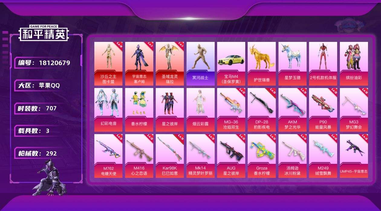 【622097】【可二次】【苹果QQ】龟仙人 MK14-精灵梦叶罗丽 木乃伊 M249-绒雪飘舞 S686-奇异狩猎者 AKM-星际浪客 漫步者 M24-奇异狩猎者 星之彼岸飞行器 宇宙意志-塞卢姆 沙丘之主-图卡盟 星之彼岸 M416-心之恋语 缤纷油彩 M24-香水柠檬 瑞龙福将 AUG-星之彼岸 MG3-梦幻舞会 团圆交子 AKM-奇异狩猎者 汤姆逊-冰川粉黛 P90-能量风暴 星梦玉骢
