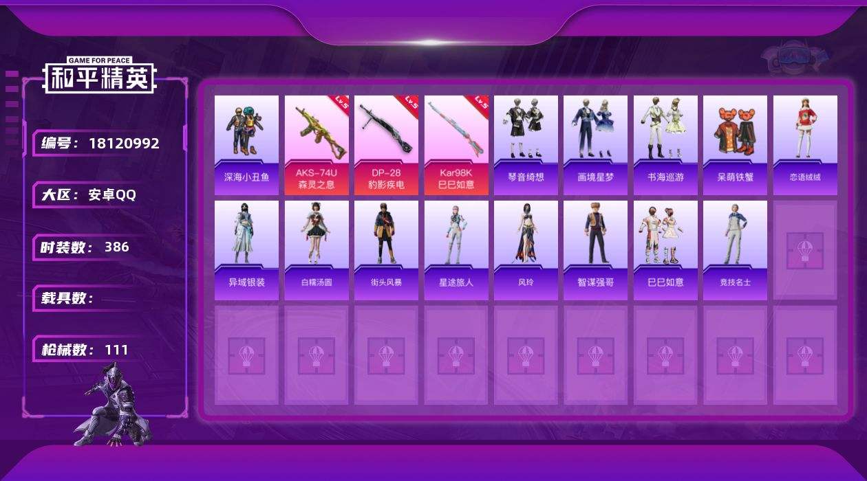 游戏区服:和平精英 / 安卓系统 / QQ账号