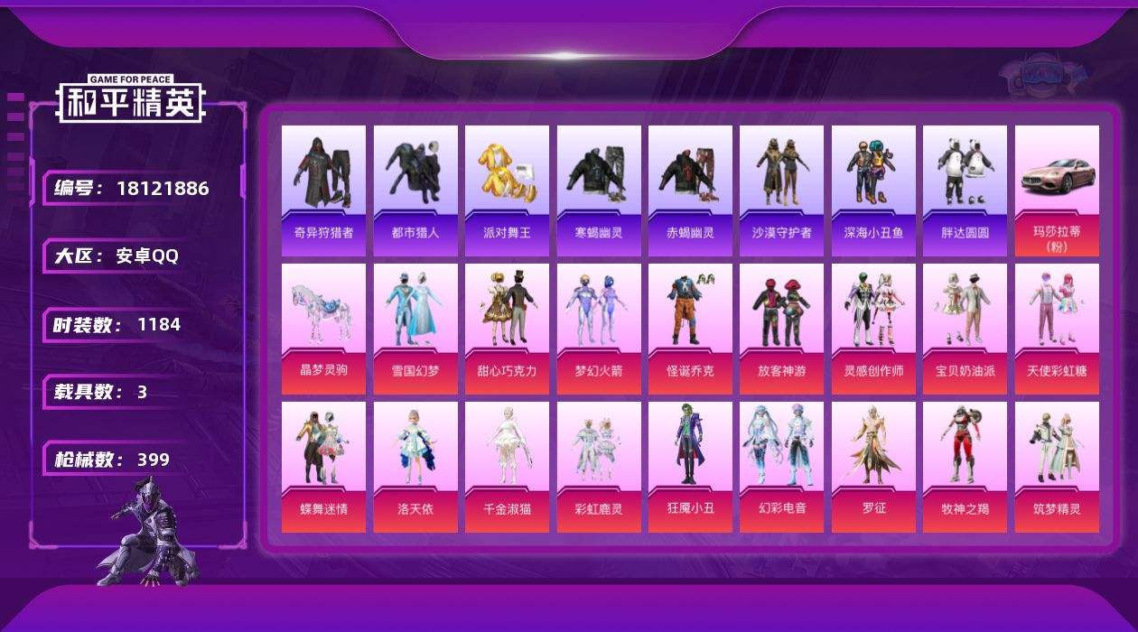 【622308】【不可二次】【安卓QQ】漫步者 M416-星际漫游 都市猎人 忍者信条 M762-奇异狩猎者 Mini14-林间仙鹿 寒蝎幽灵 AUG-星梦奇缘 UMP45-量子极限 M416-仓鼠灰灰 深海小丑鱼 浪漫波比 蝶舞迷情 SS1特训 AKM-盖世英雄 怪诞乔克 迅捷狂鲨 M762-瑞龙福将 新侠客行 狂沙舞者 金羽特工 AKM-炫紫旋律 P90-金丰海韵 S686-奇异狩猎者 M7